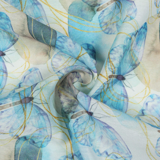 -10% offWhite And Purple Butterfly Pattern Digital Print Chanderi Fabric White And Purple Butterfly Pattern Digital Print Chanderi Fabric