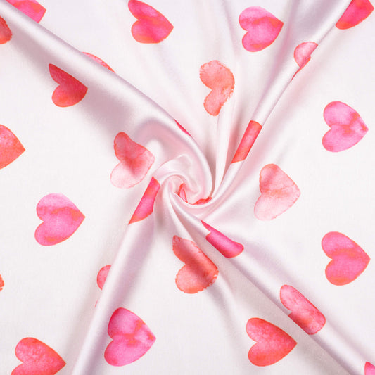 -10% offWhite And Punch Pink Heart Pattern Digital Print Japan Satin Fabric White And Punch Pink Heart Pattern Digital Print Japan Satin Fabric