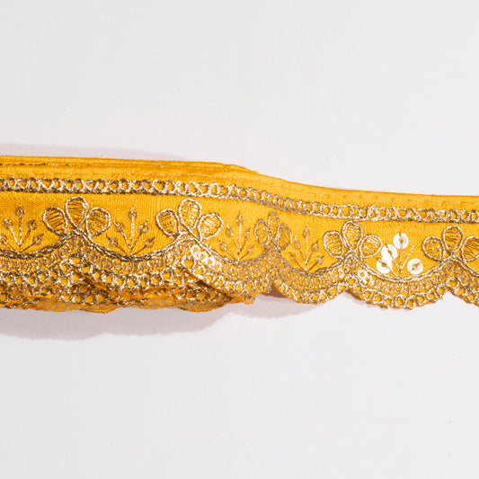 Yellow Fancy Sequins Adorn Delicate Scalloped Lace (9 Mtr) Yellow Fancy Sequins Adorn Delicate Scalloped Lace (9 Mtr)