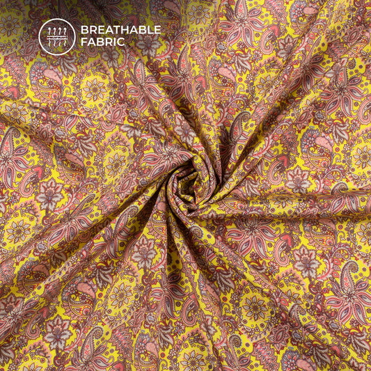 -11% offYellow Floral Digital Print Pure Cotton Mulmul Fabric Yellow Floral Digital Print Pure Cotton Mulmul Fabric