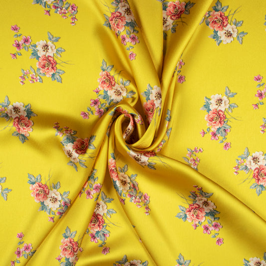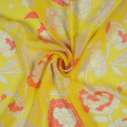 Yellow Floral Digital Print Viscose Gaji Silk Fabric Yellow Floral Digital Print Viscose Gaji Silk Fabric