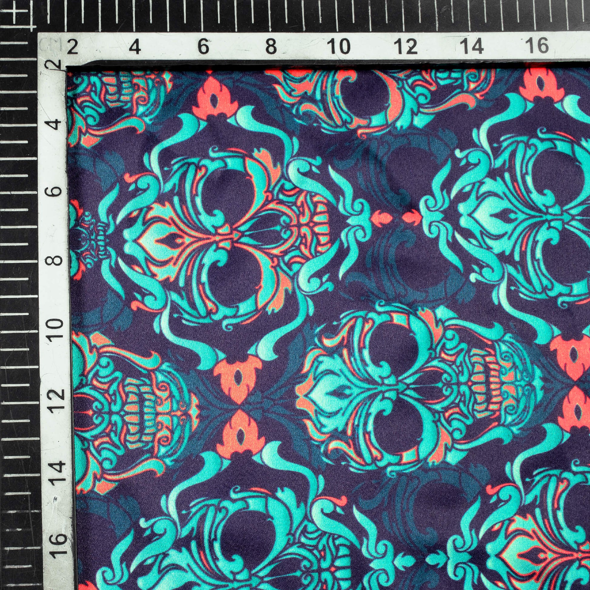 Blue And Orange Halloween Pattern Digital Print Japan Satin Fabric