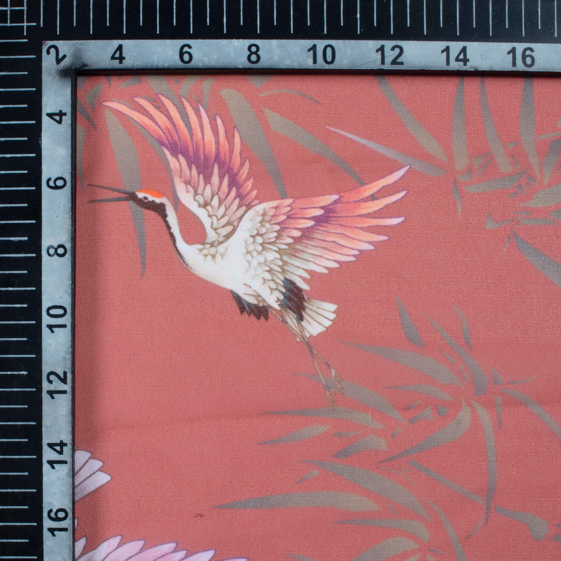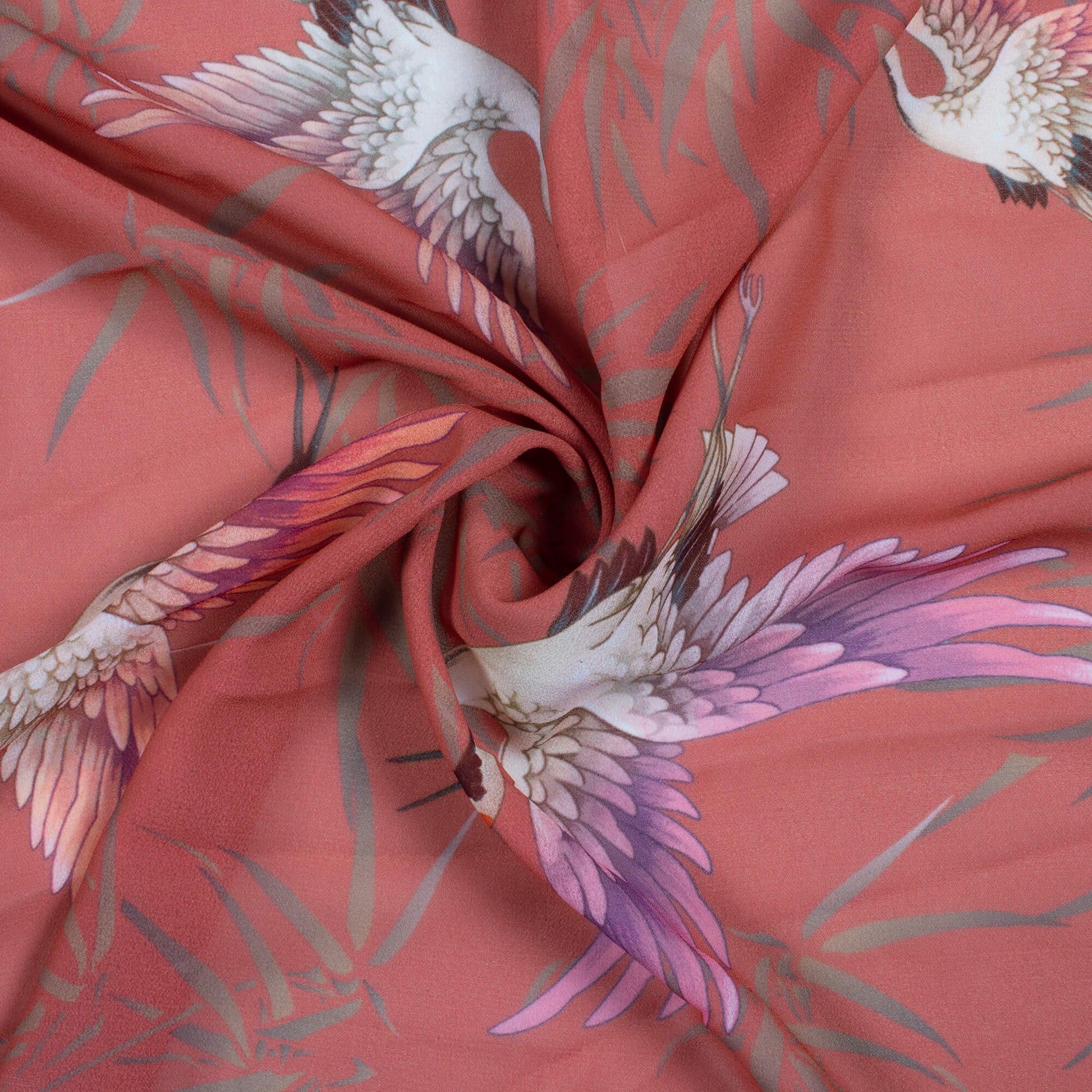 Blush Red And White Bird Pattern Digital Print Georgette Fabric