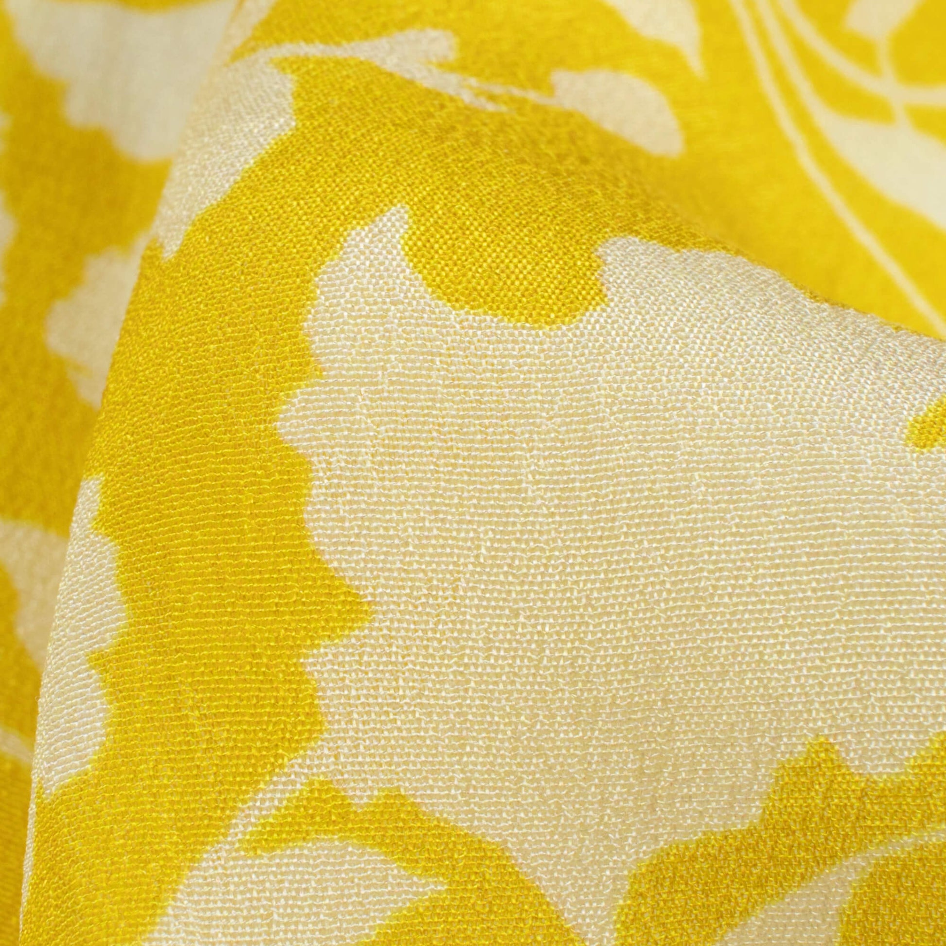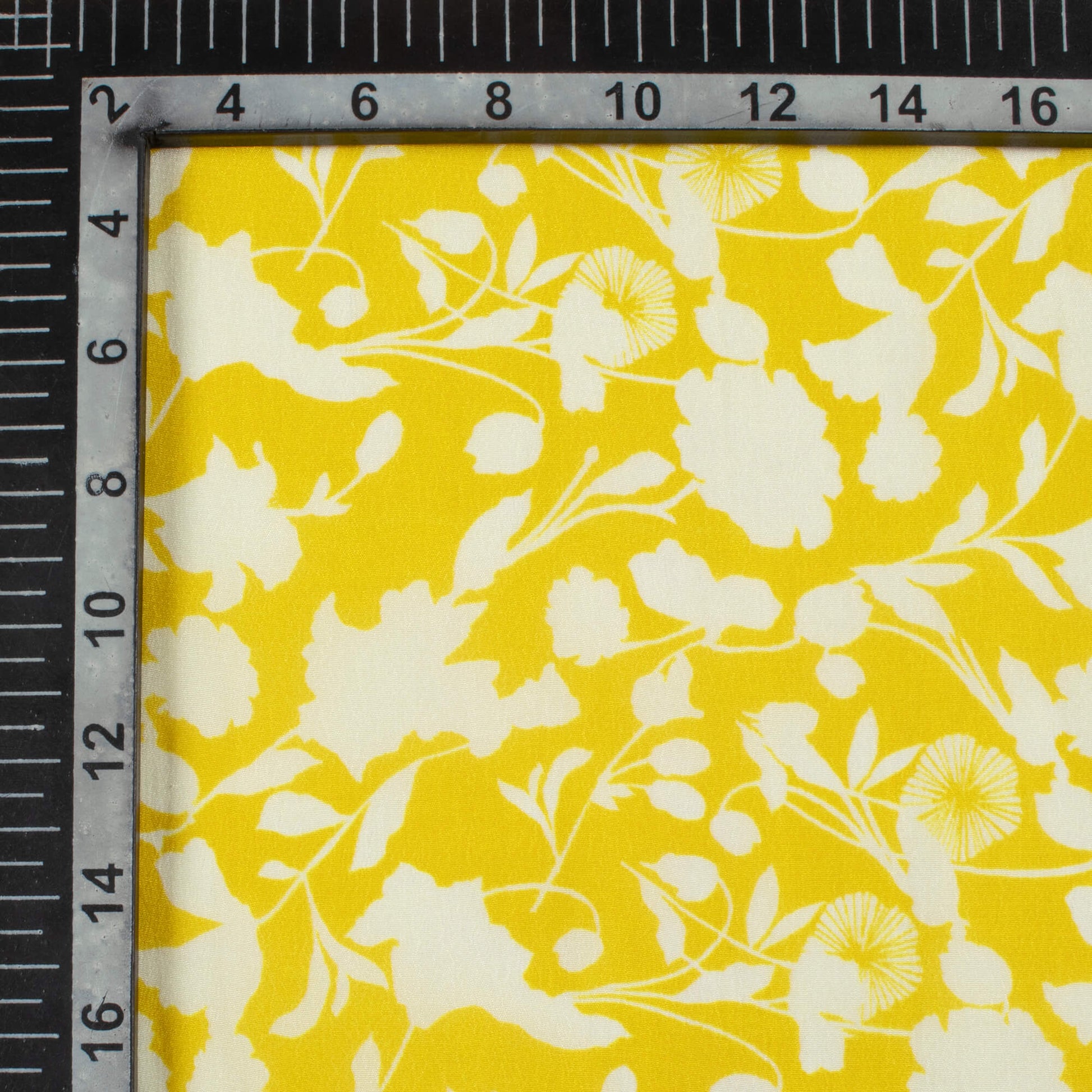 Bumblebee Yellow And White Floral Pattern Digital Print Viscose Natural Crepe Fabric