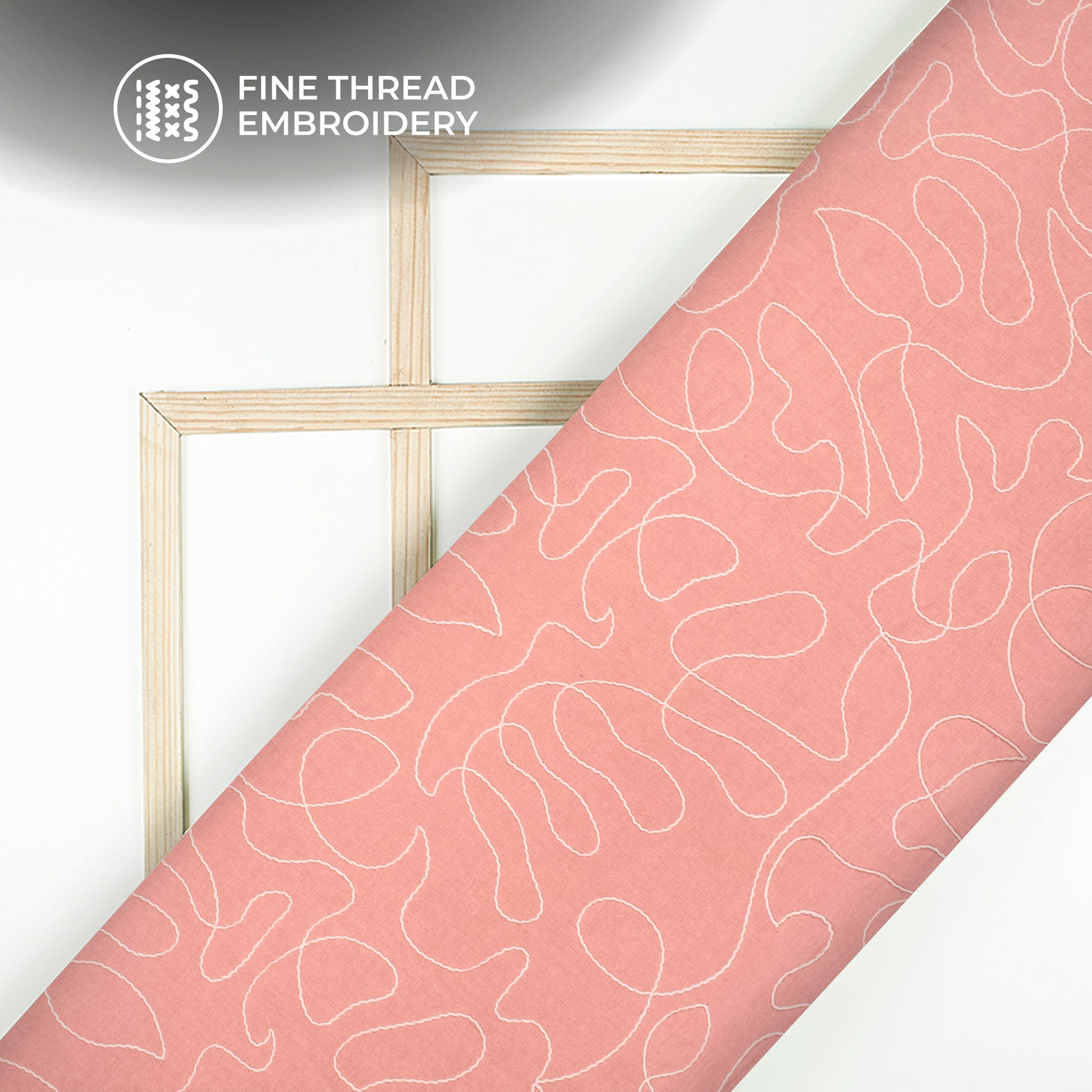 Careys Pink Embroidery Threadwork Plain Pure Cotton Fabric