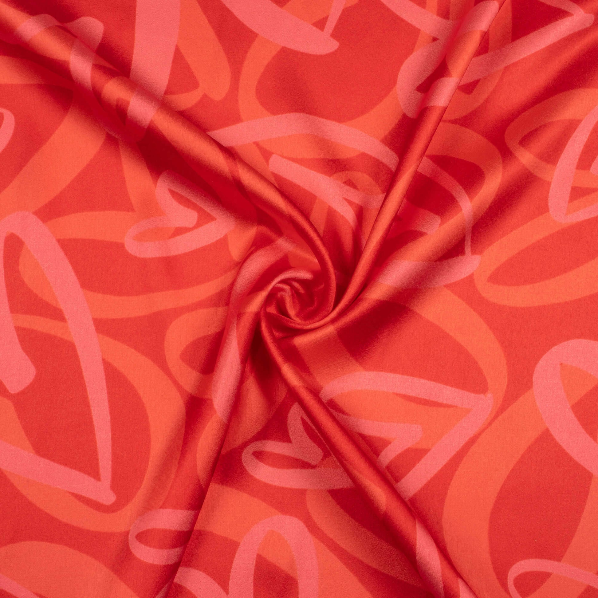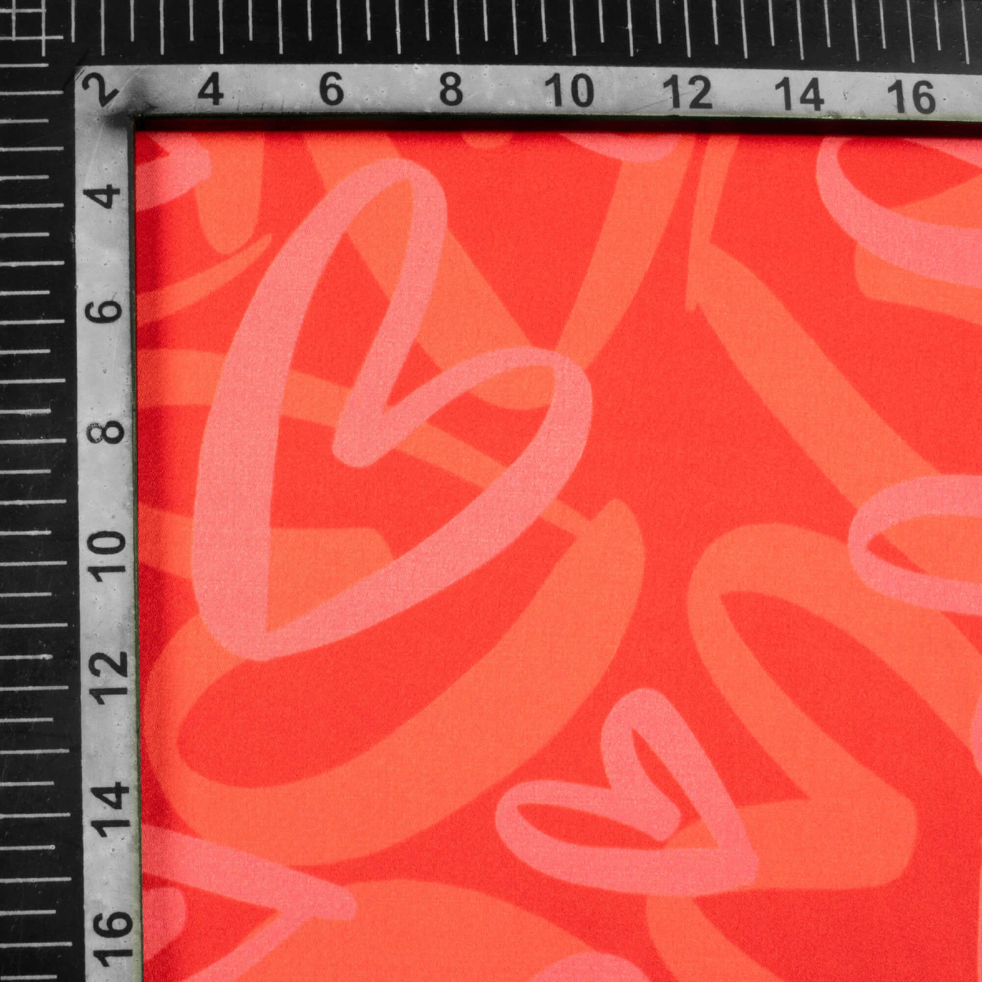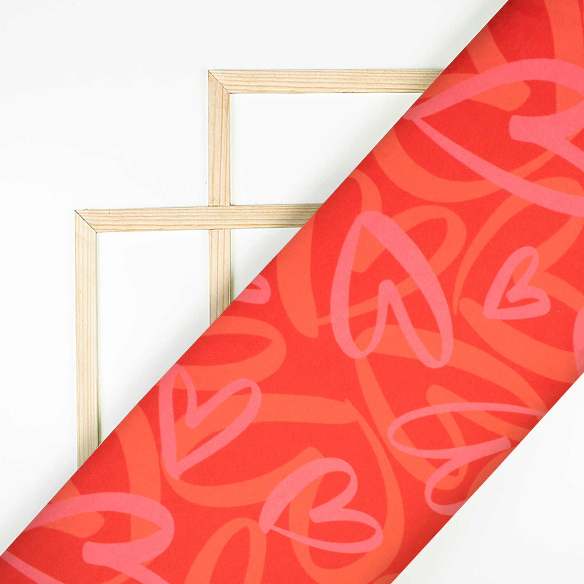 Cherry Red And Taffy Pink Heart Pattern Digital Print Japan Satin Fabric