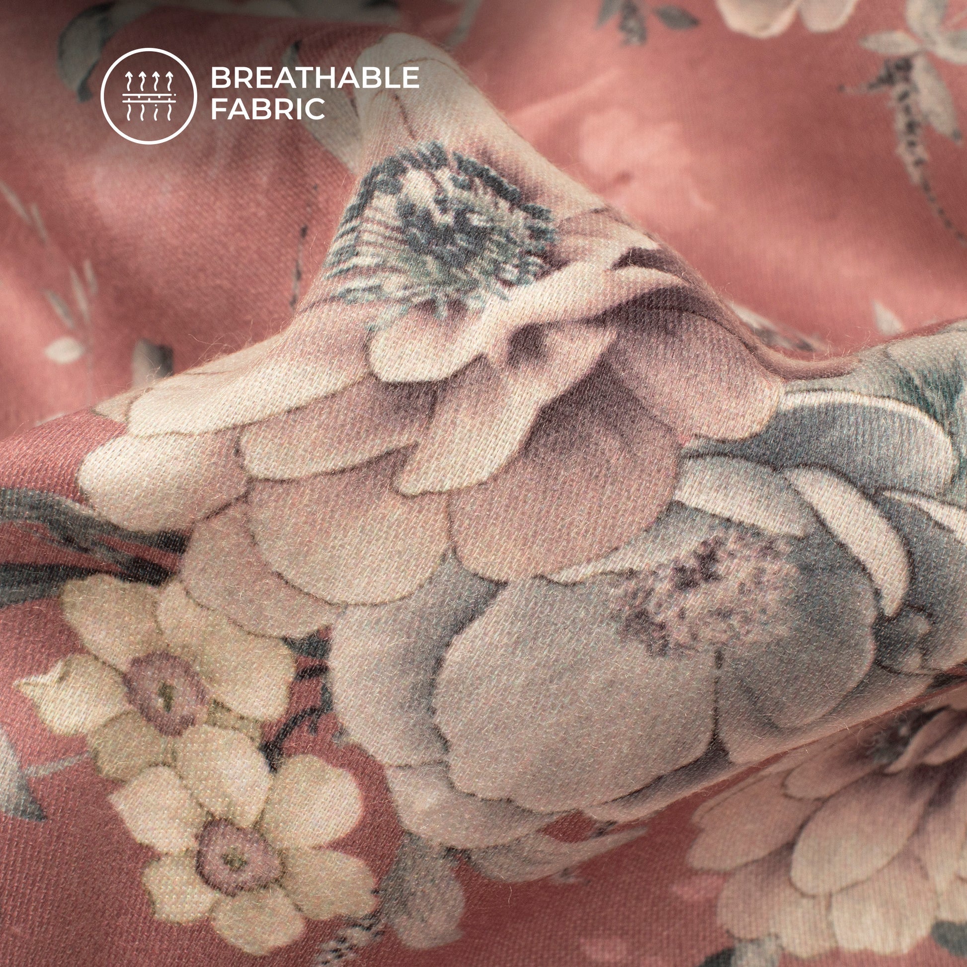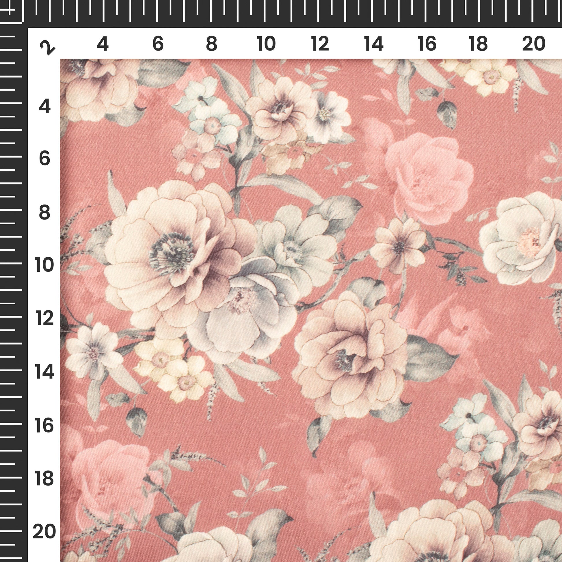 Coral Pink Floral Digital Print Poly Glazed Cotton Fabric