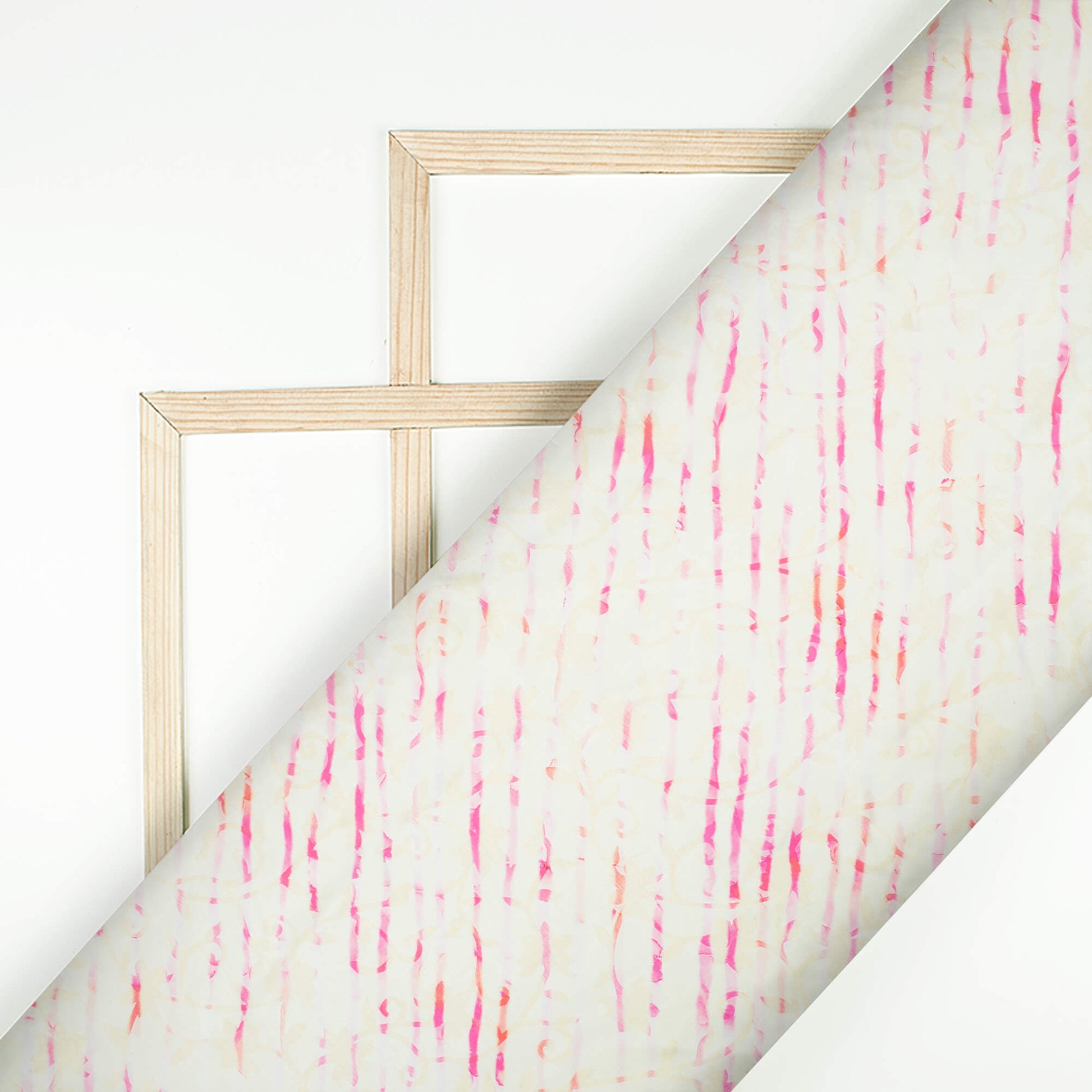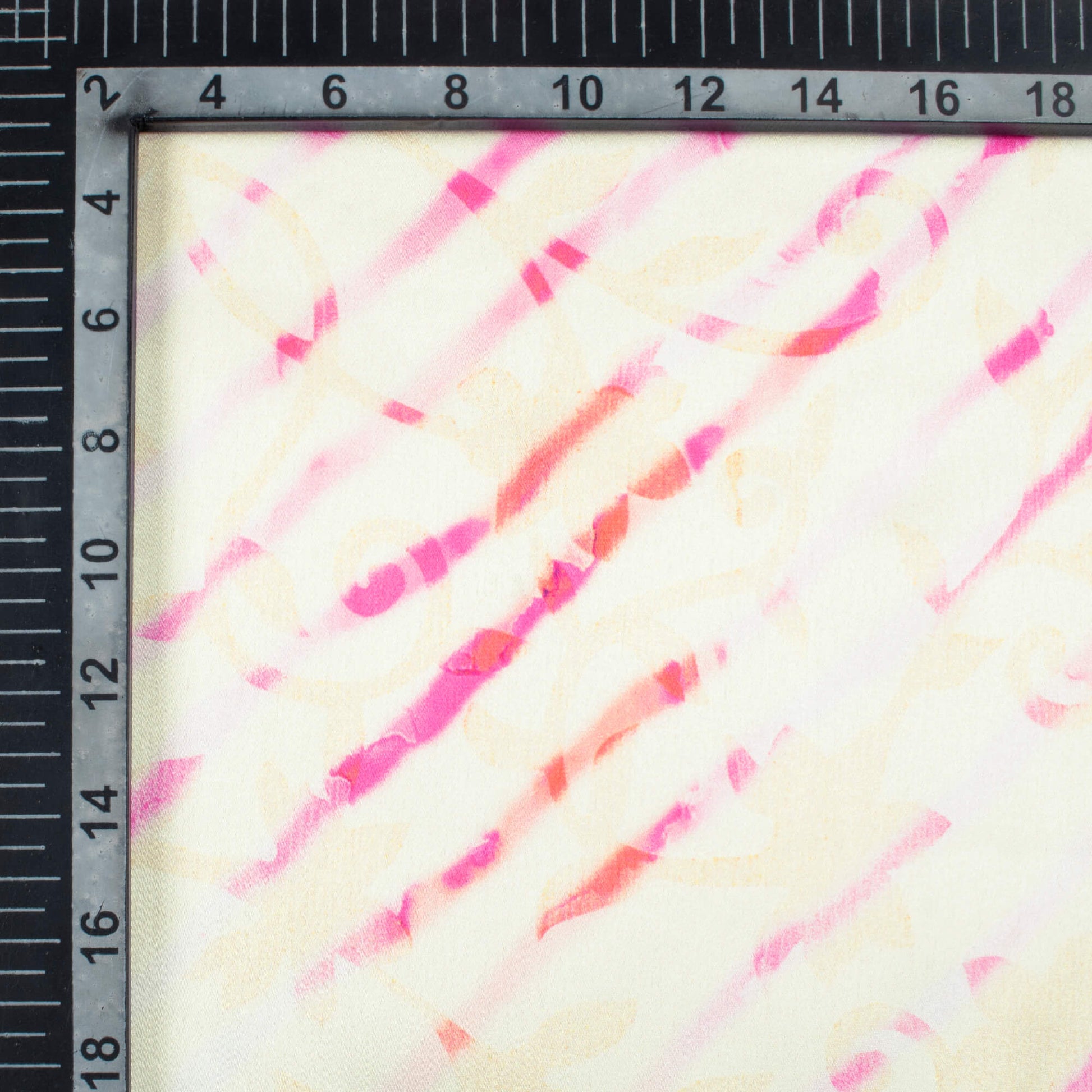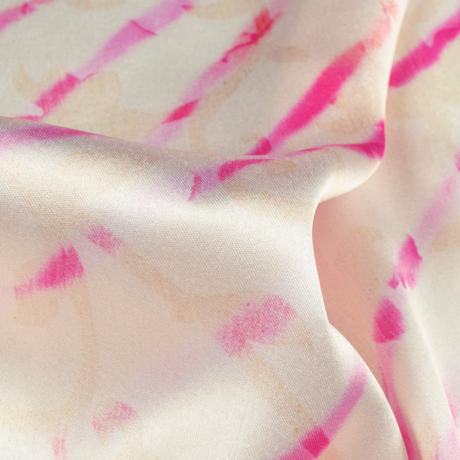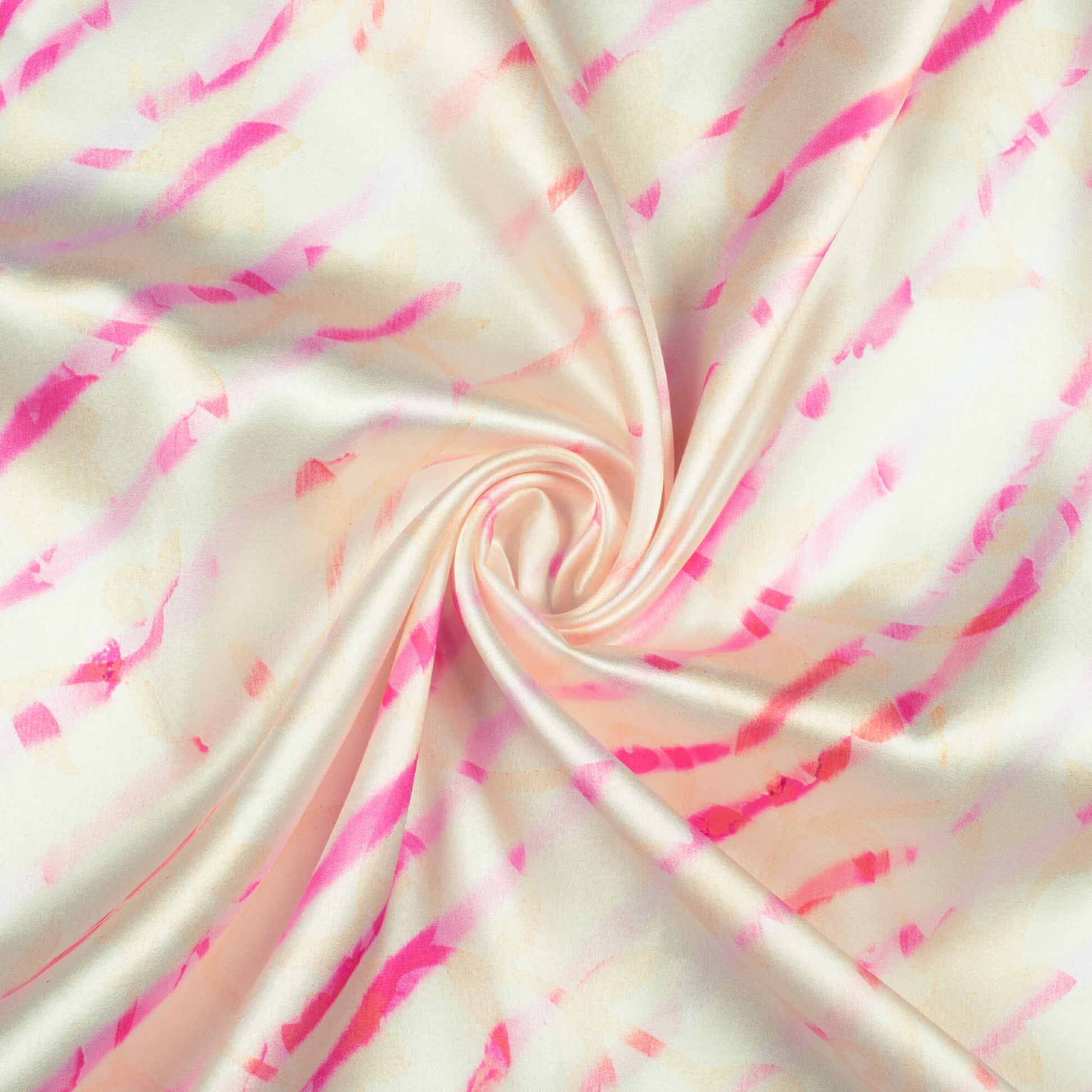 Daisy White And Hot Pink Leheriya Pattern Digital Print Japan Satin Fabric