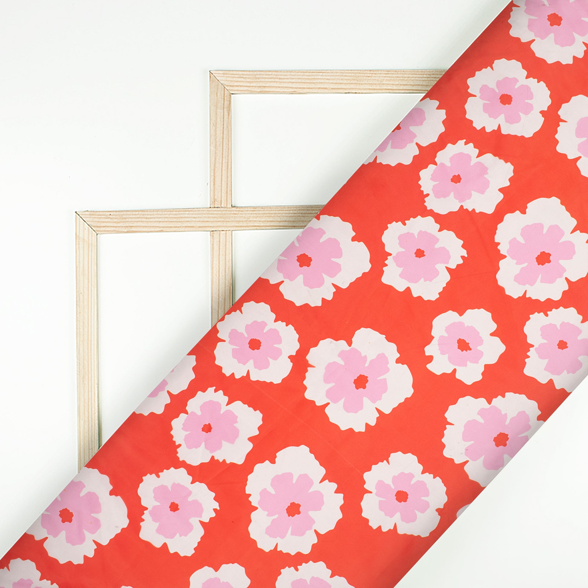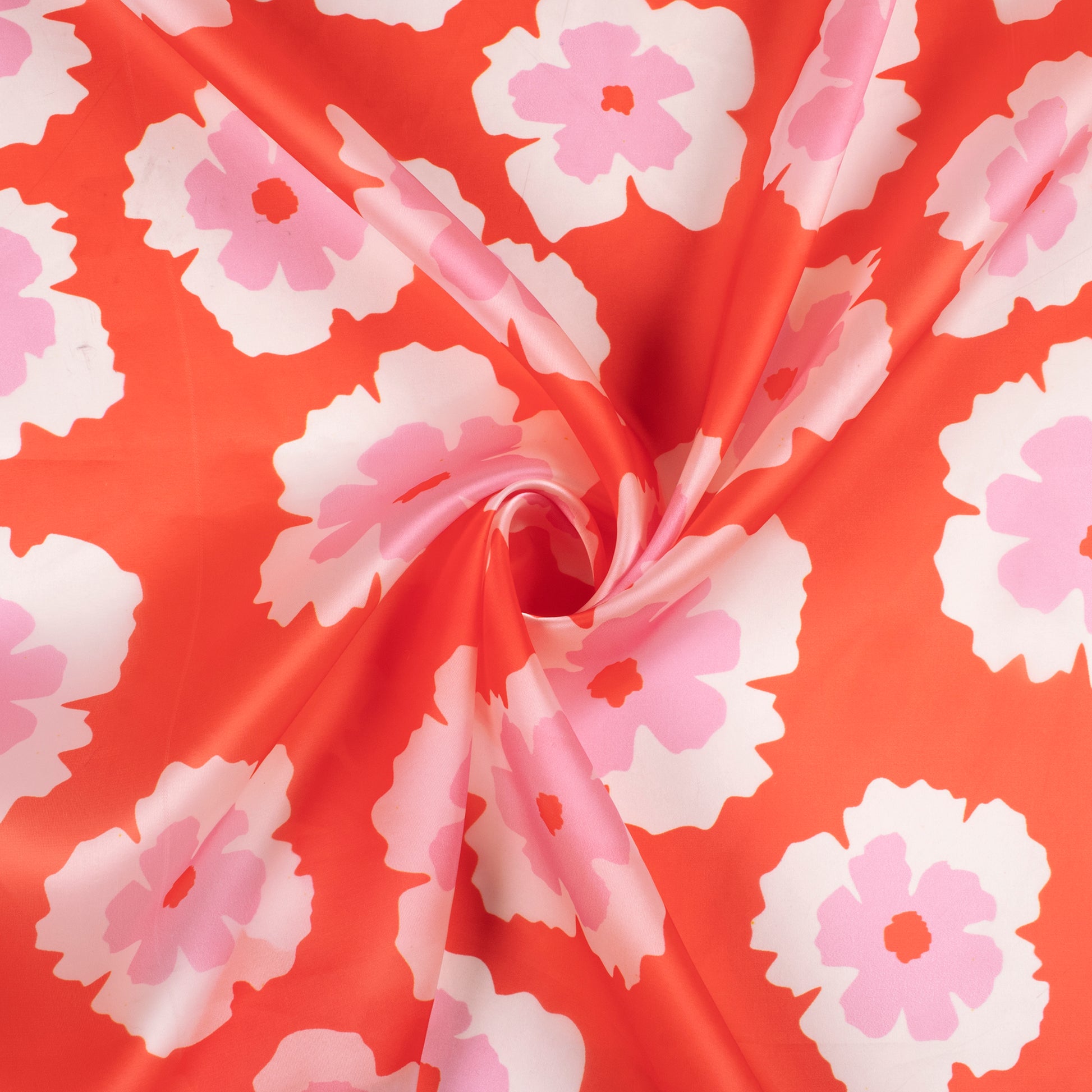 Fancy Red Floral Digital Print Organza Satin Fabric