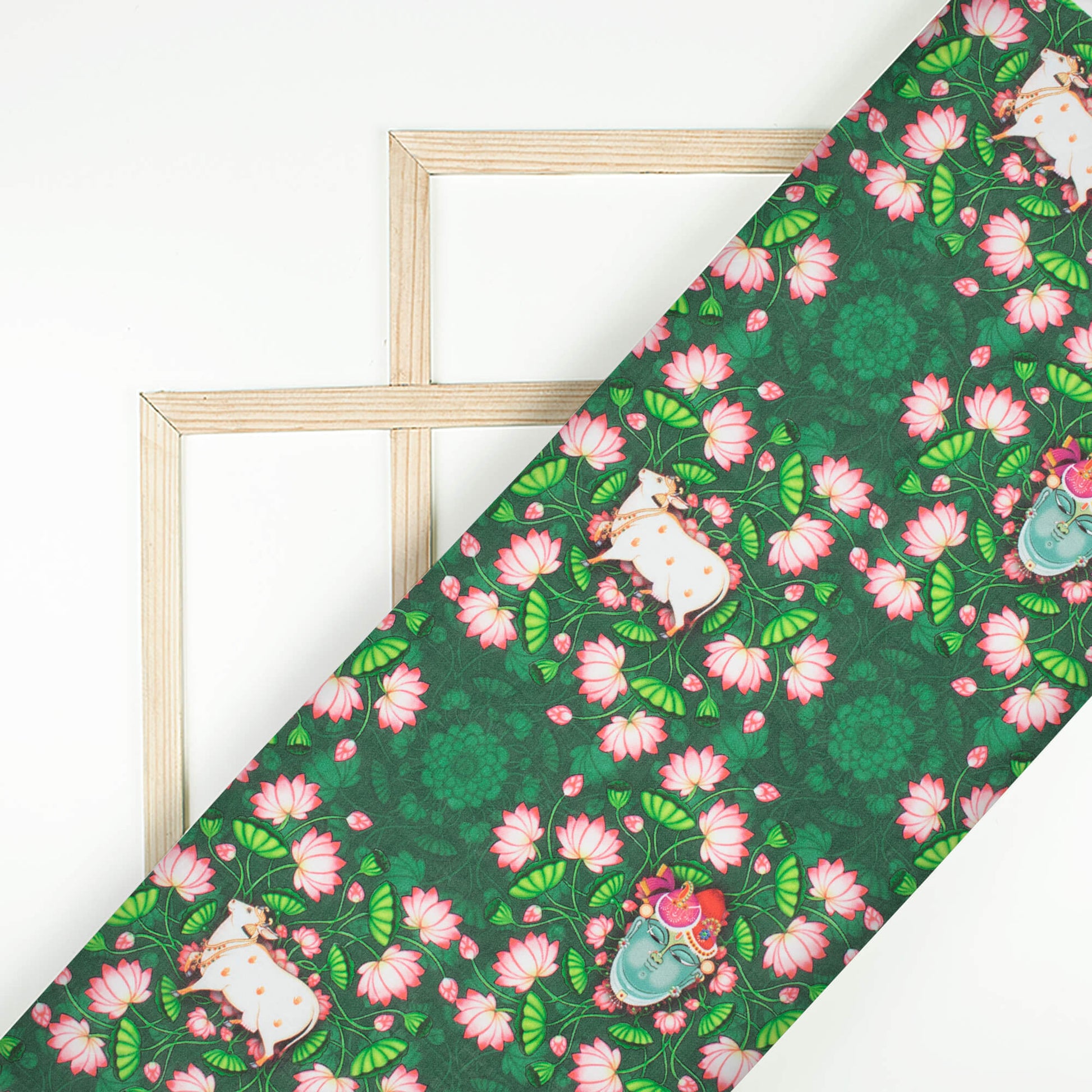 Forest Green And Taffy Pink Pichwaii Pattern Digital Print Poly Cambric Fabric
