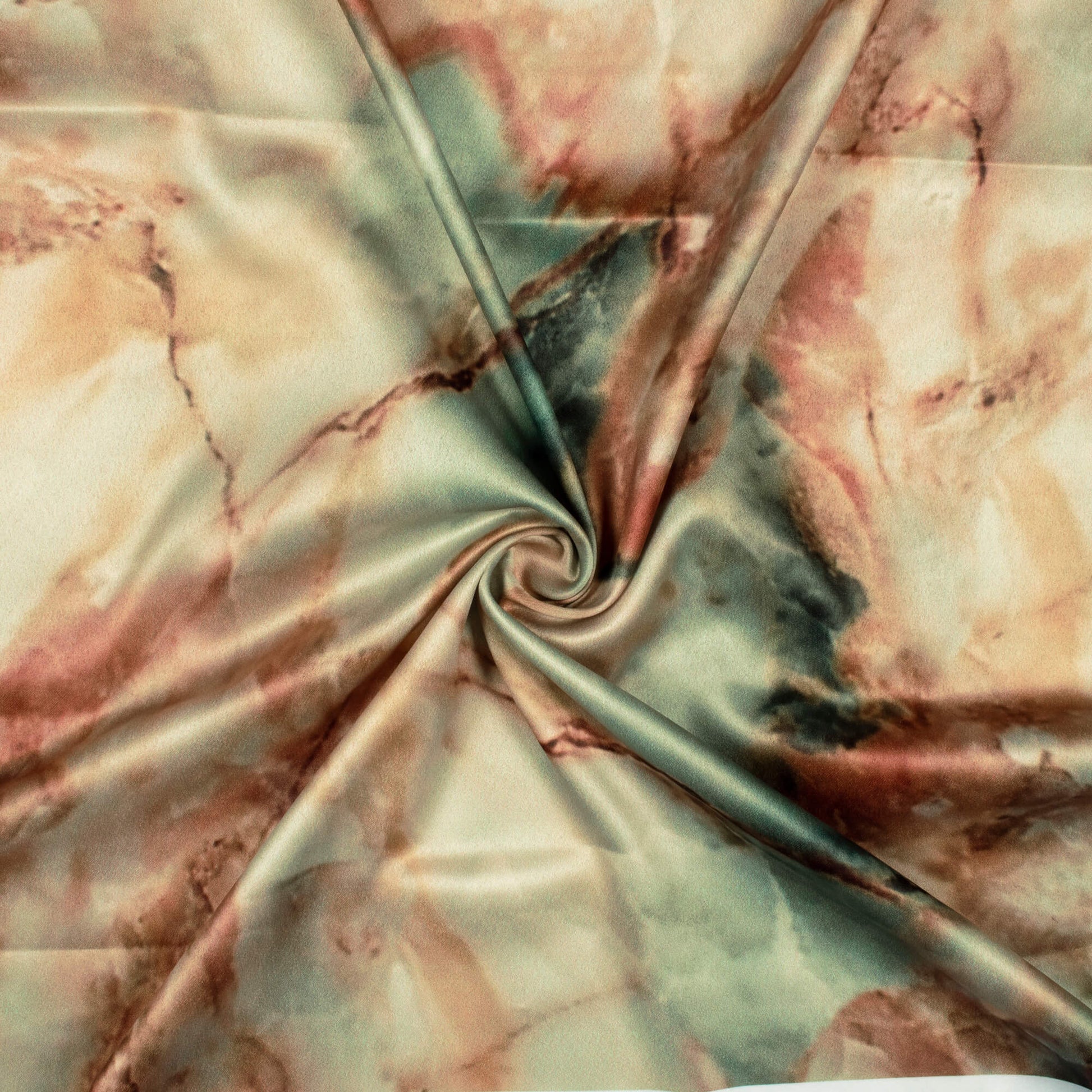 Gingerbread Brown Marble Pattern Digital Print Charmeuse Satin Fabric (Width 58 Inches)