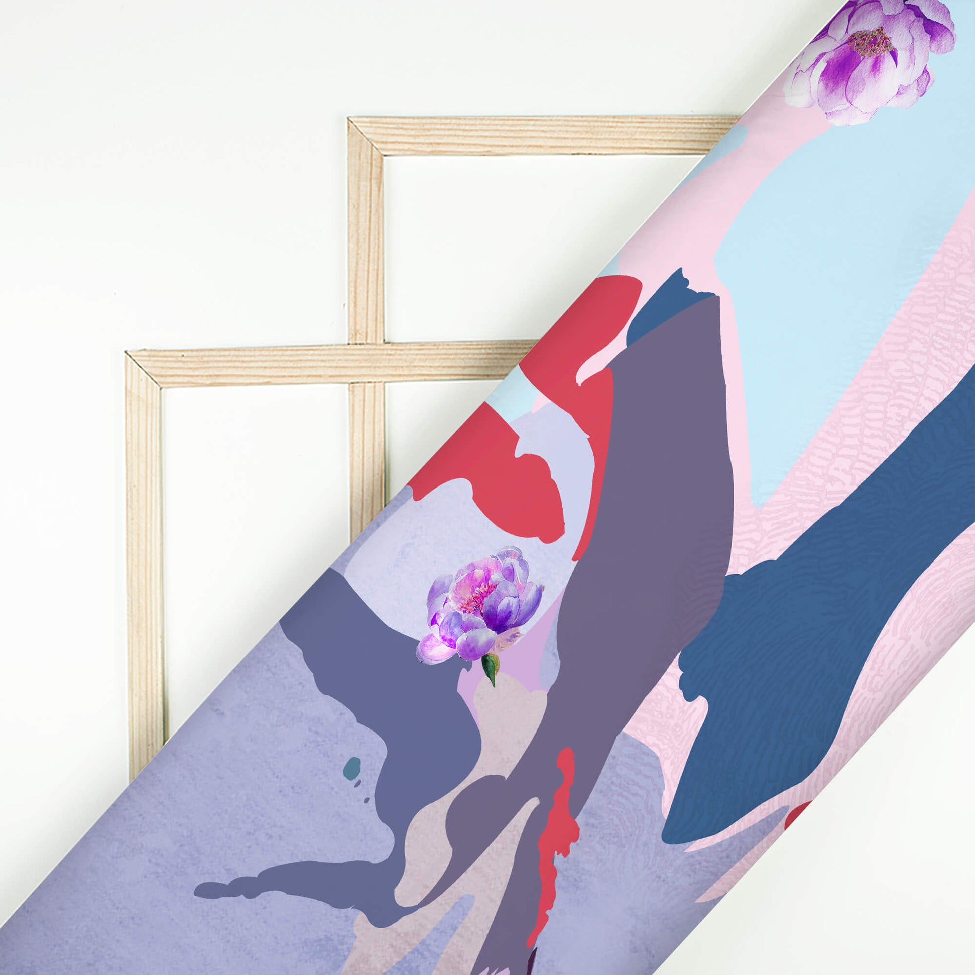Heather Purple And Red Abstract Pattern Digital Print Viscose Muslin Fabric