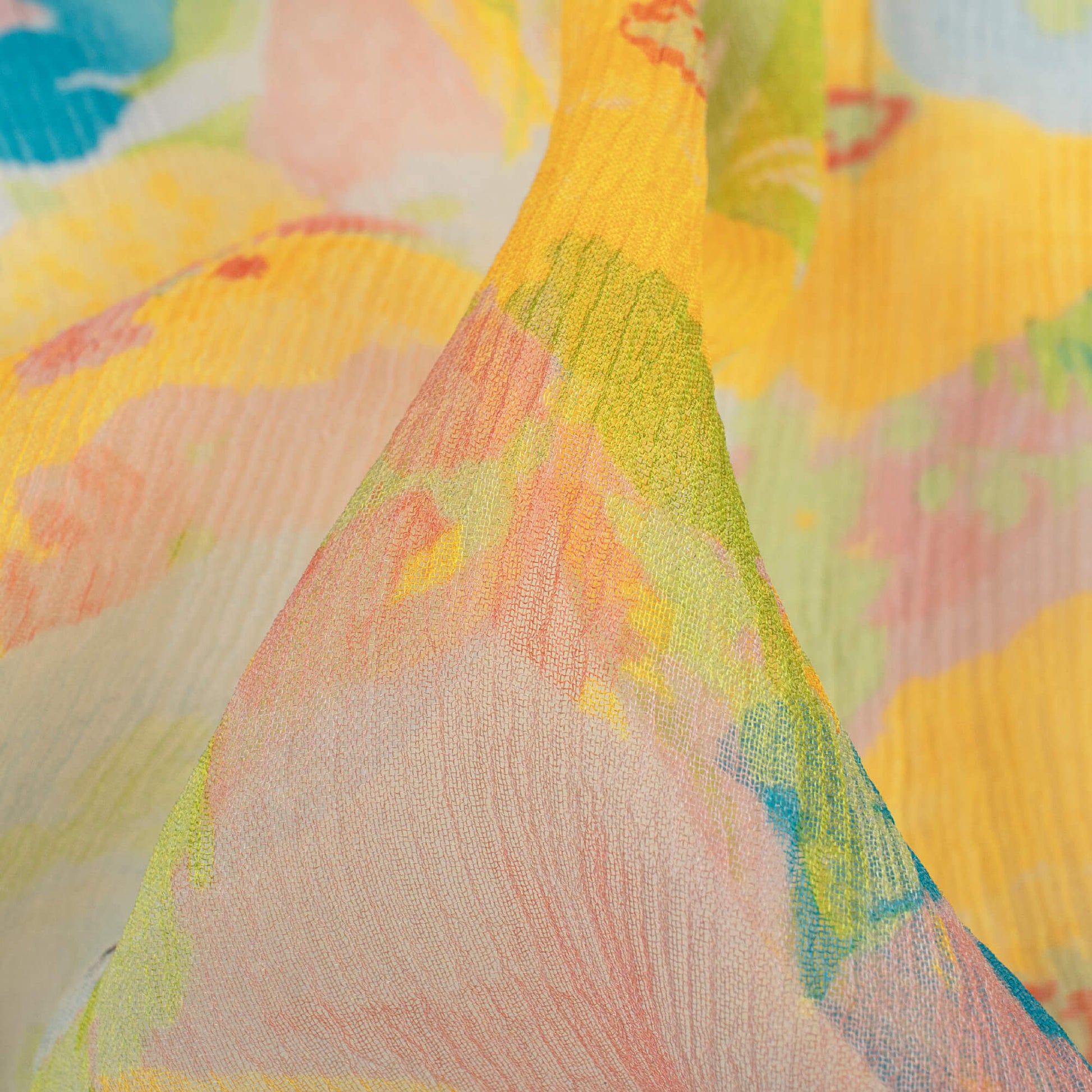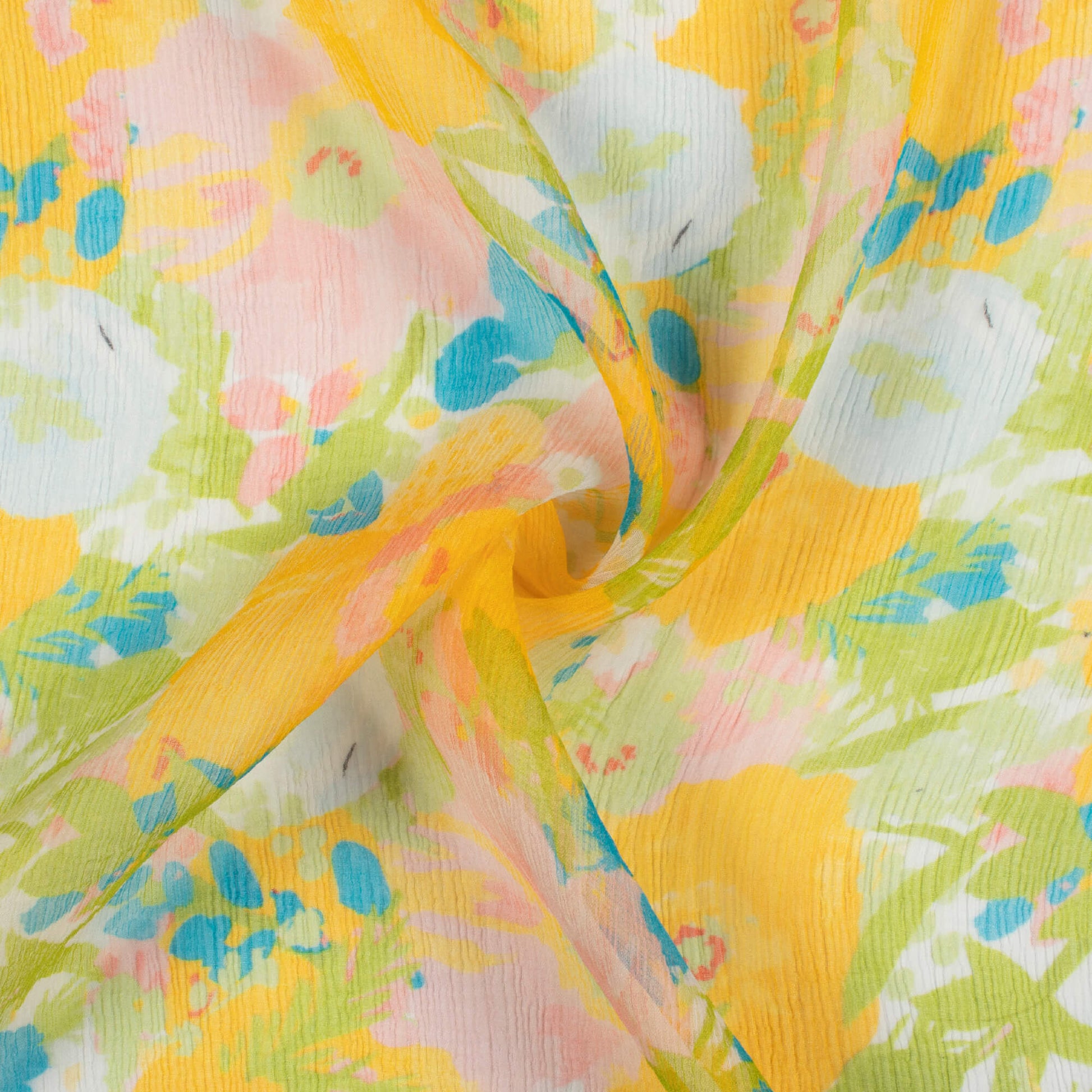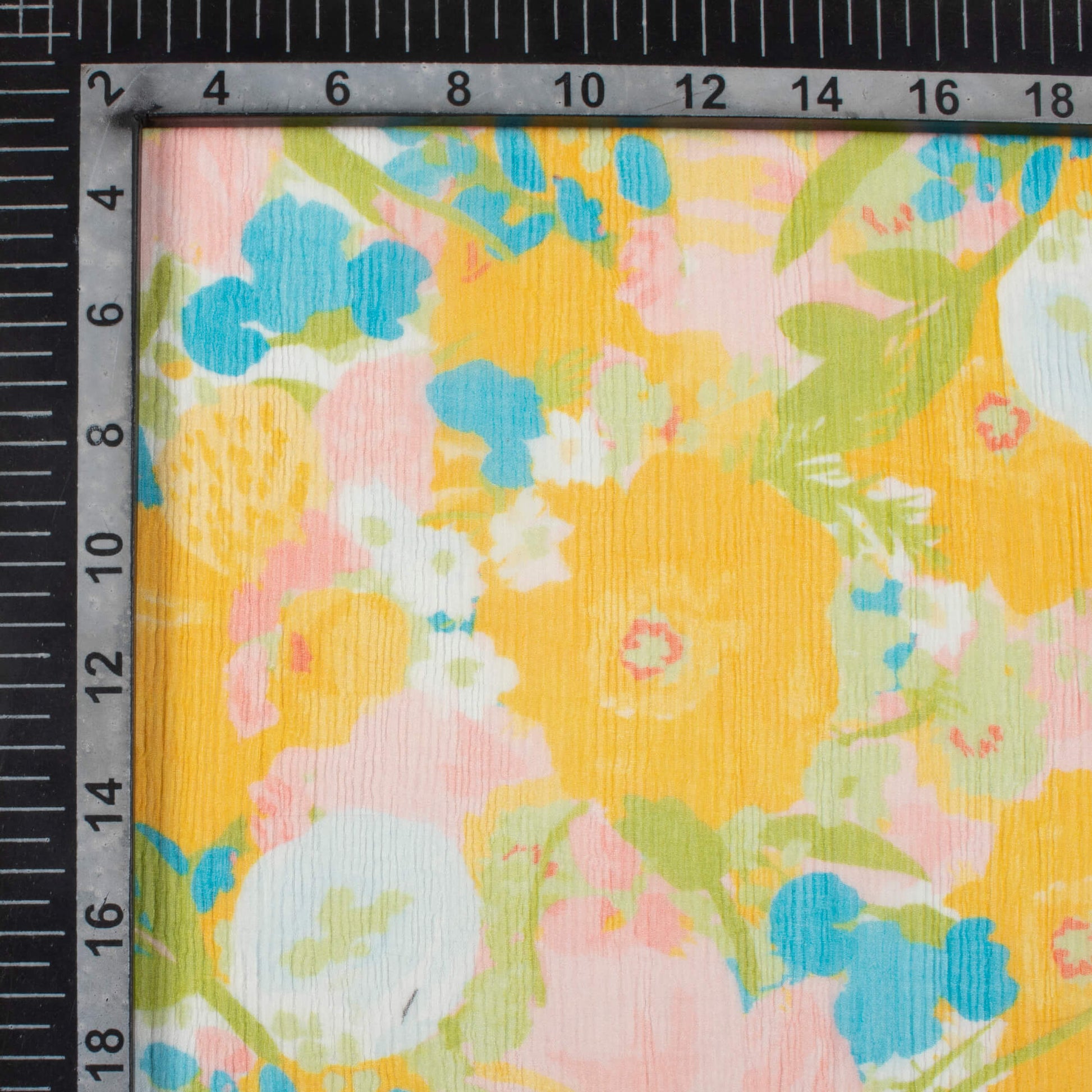 Honey Yellow And Hippie Green Floral Pattern Digital Print Bemberg Chiffon Fabric