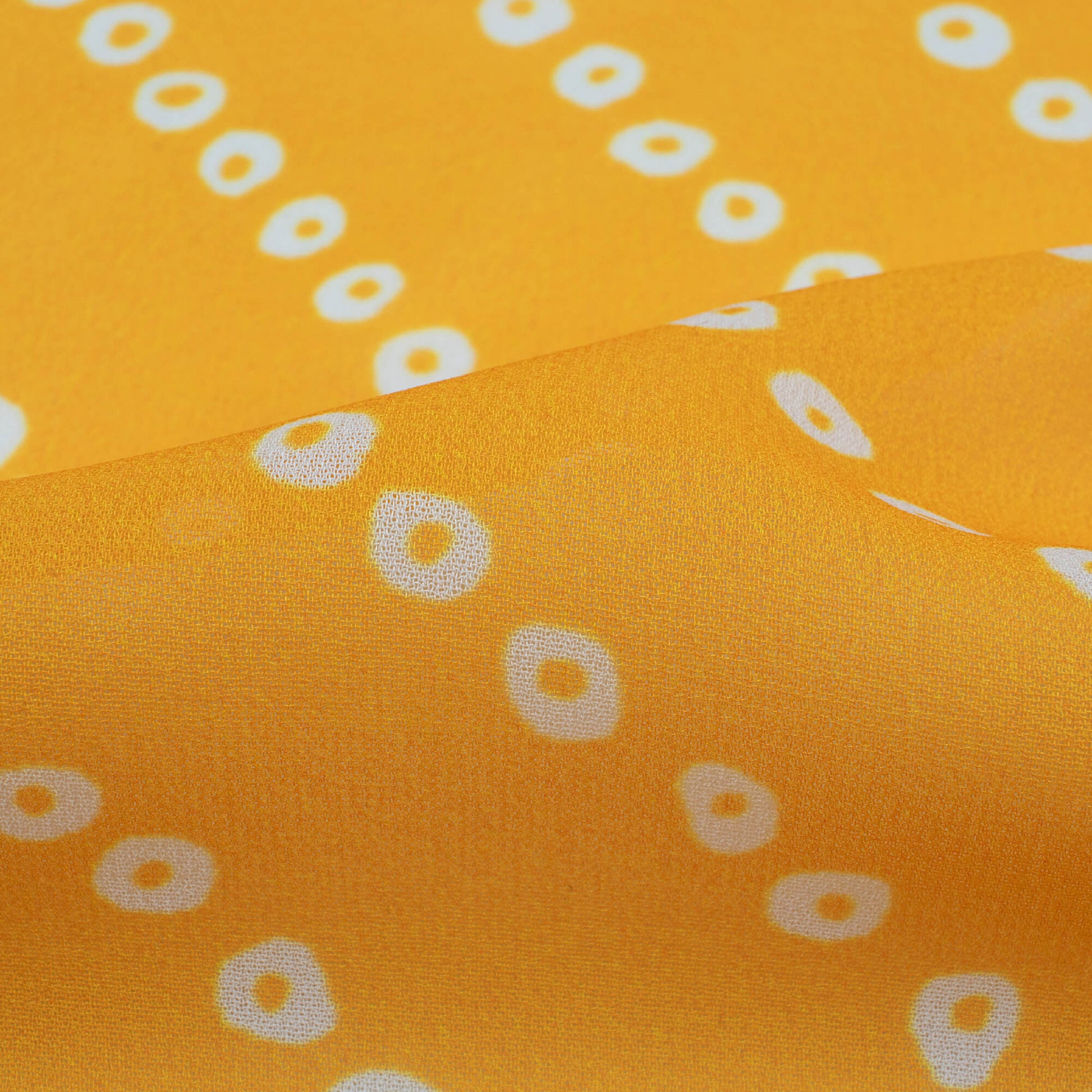 Honey Yellow And White Bandhanii Pattern Digital Print Georgette Fabric