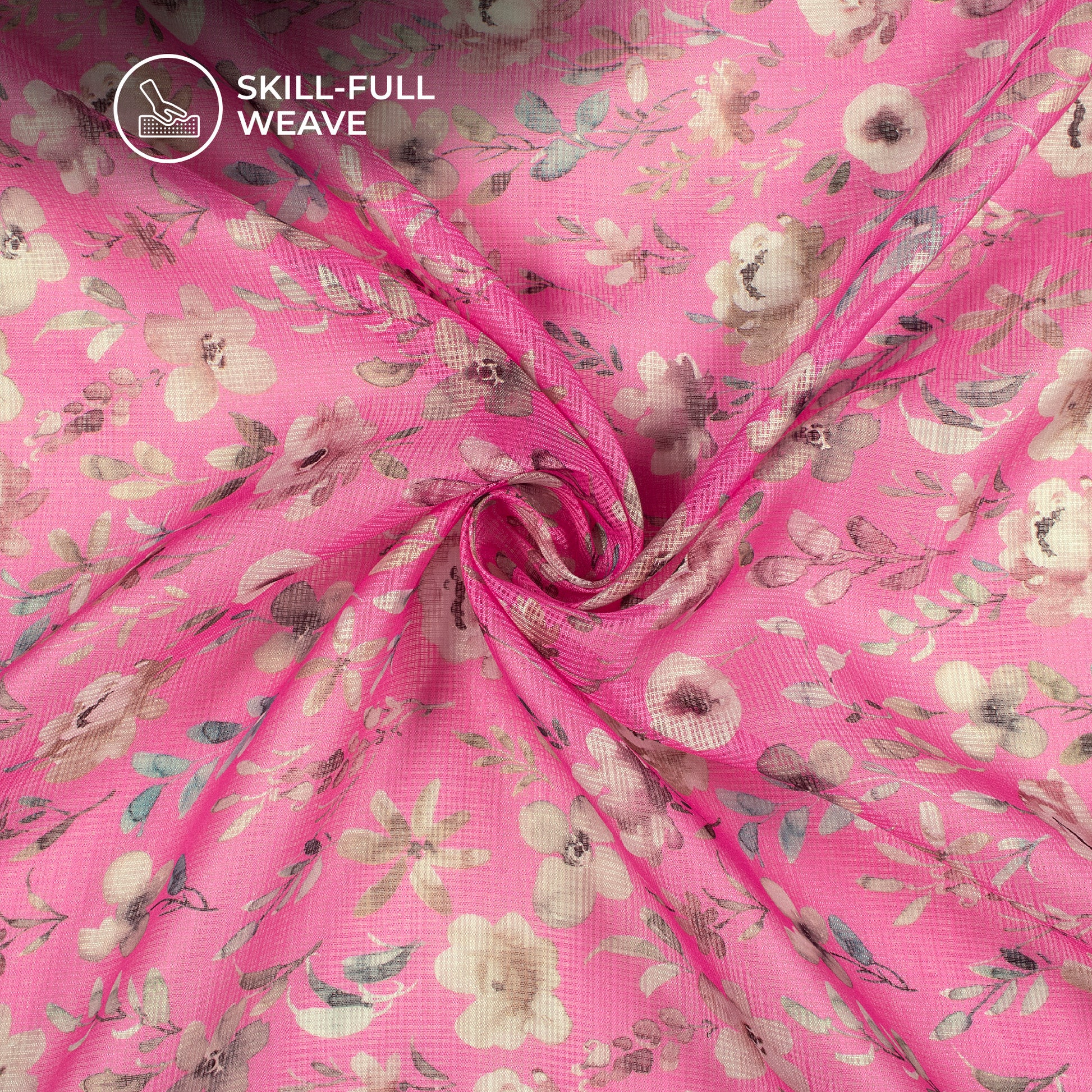 Hot Pink Floral Digital Print Kota Doria Fabric