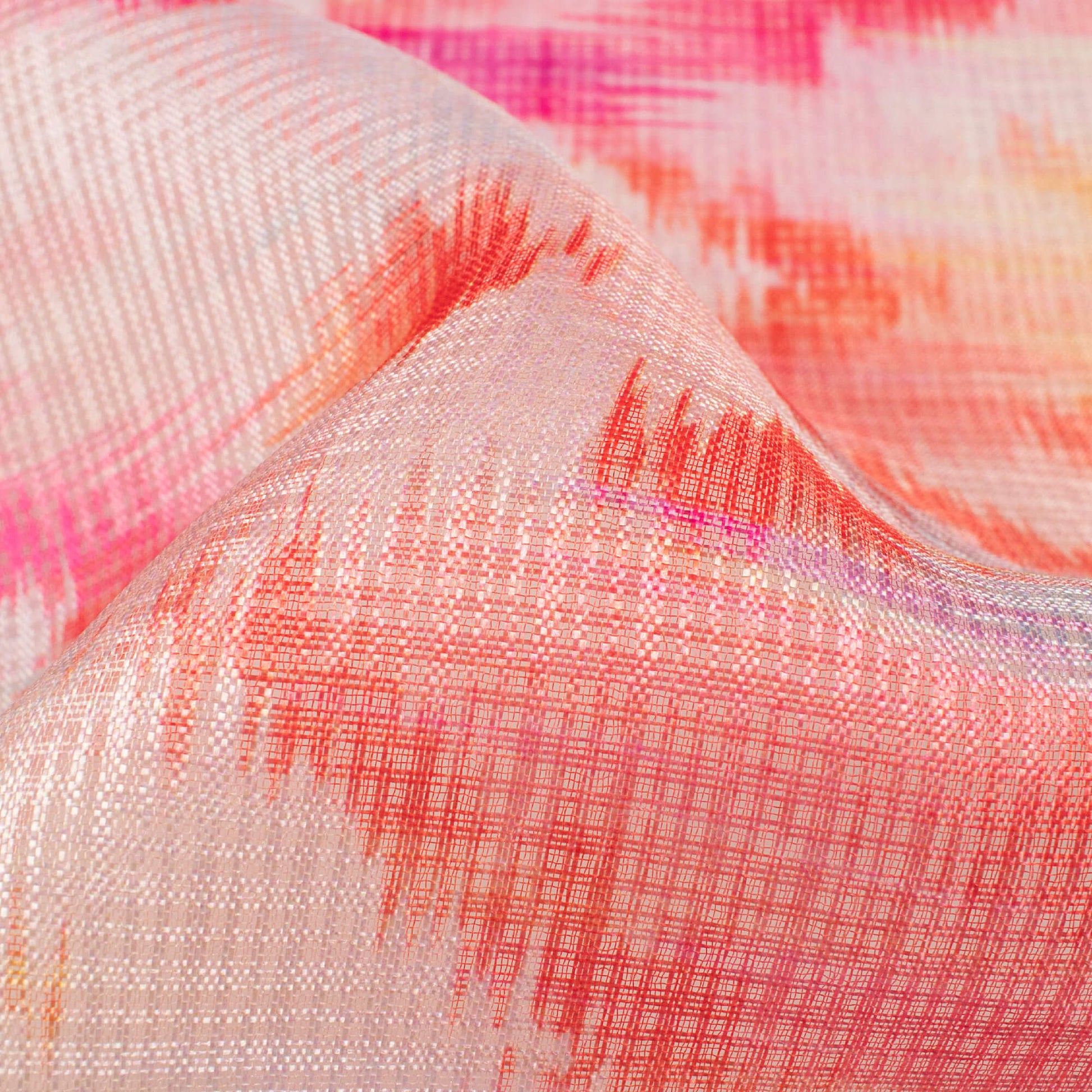 Indian Red And Orange Abstract Pattern Digital Print Kota Doria Fabric