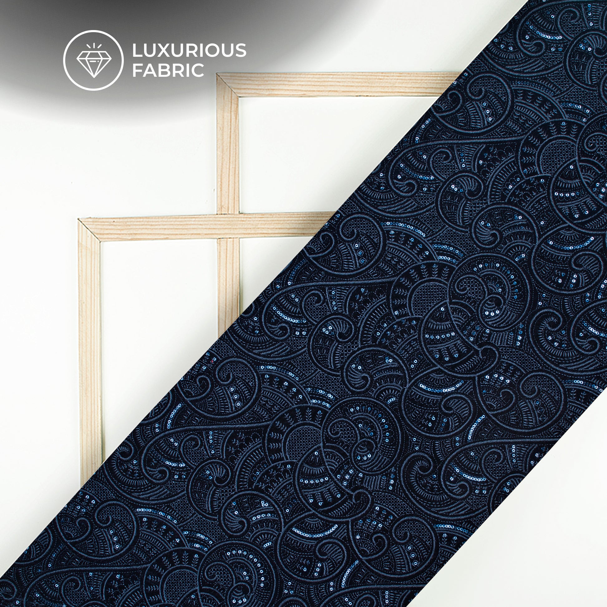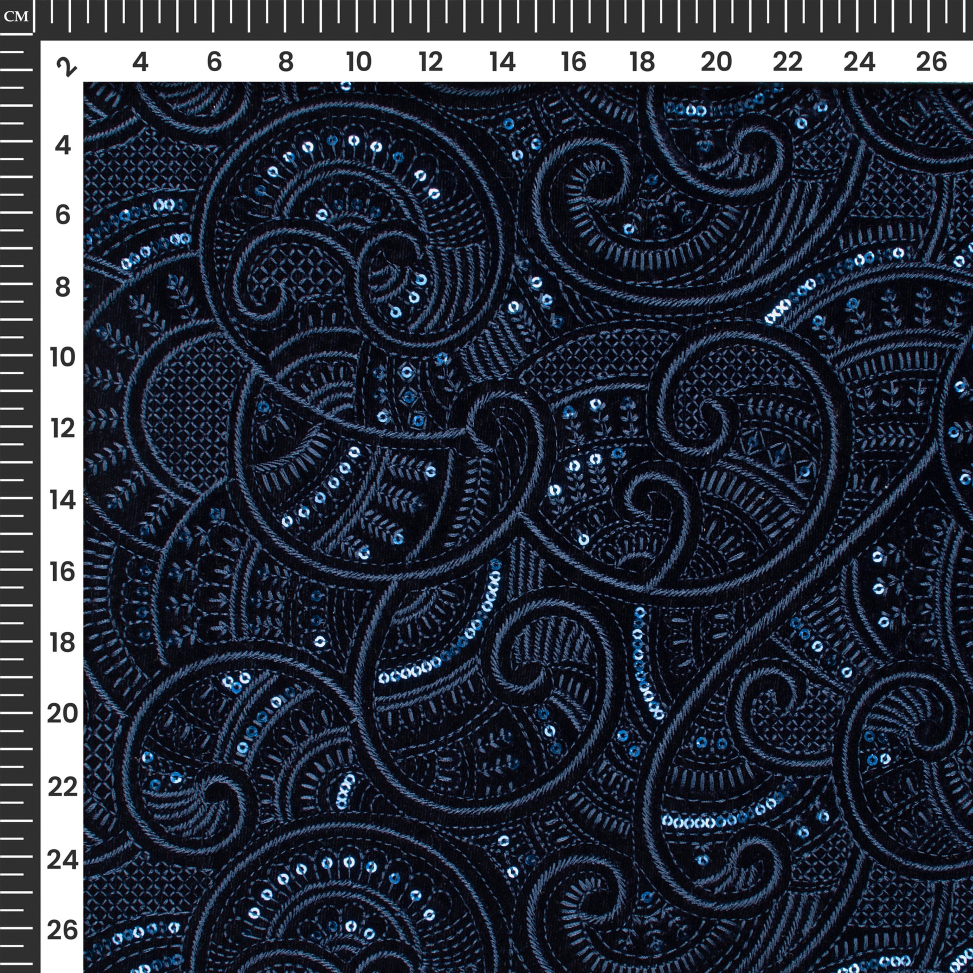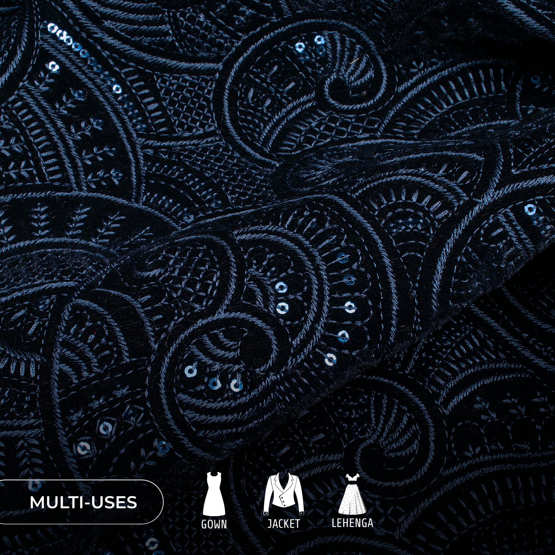 Luxurious Velvet Embroidered Fabric With Sequins And Delicate Threadwork