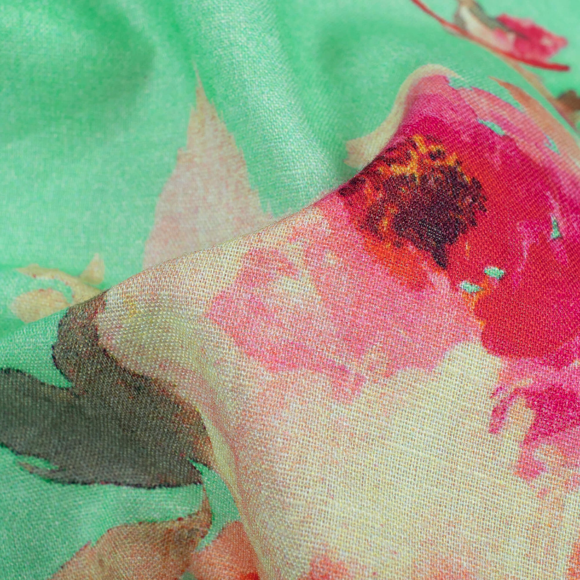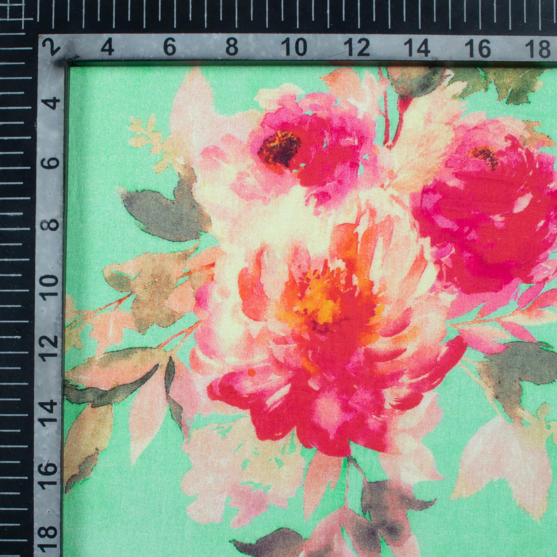Mint Green And Peach Floral Pattern Digital Print Cotton Cambric Fabric