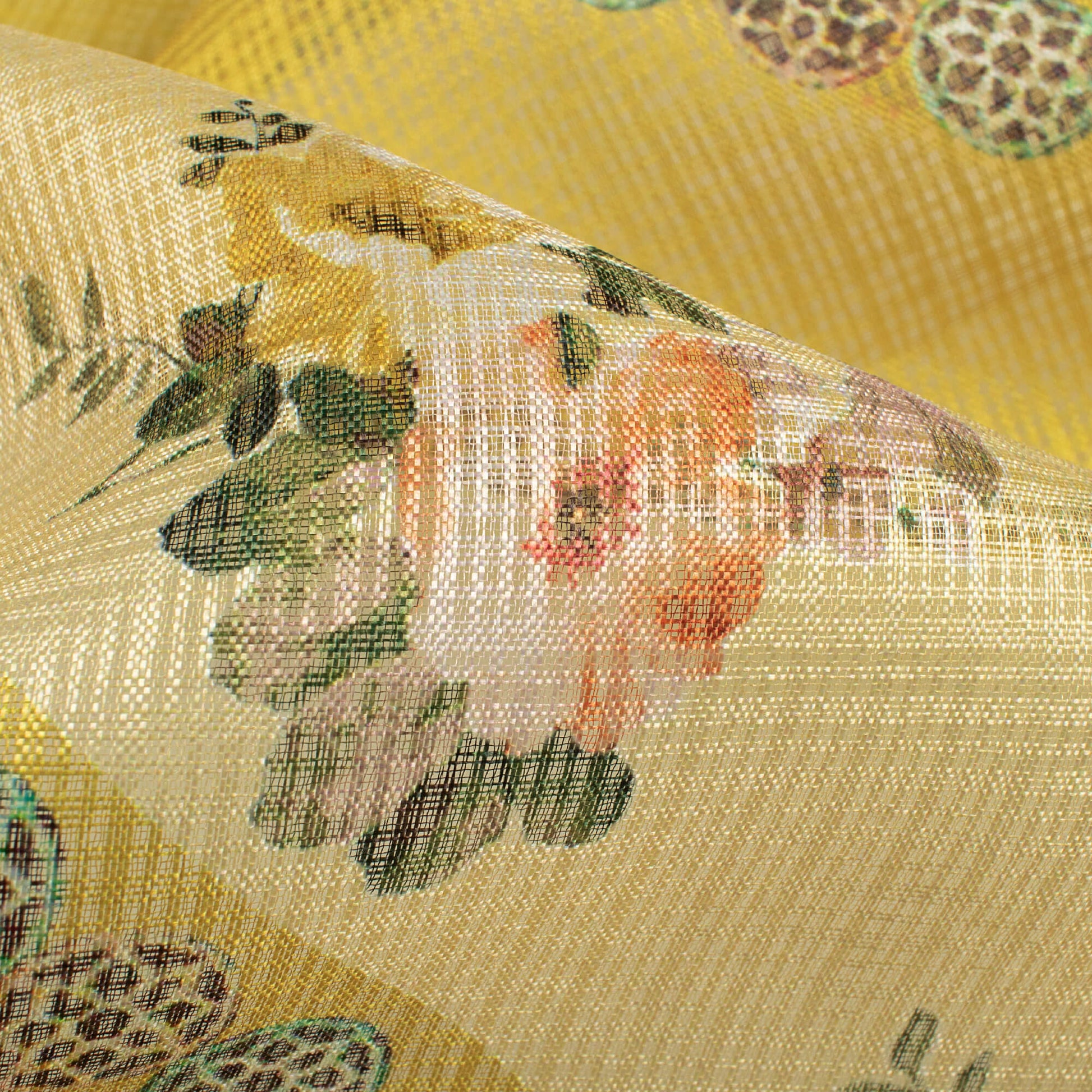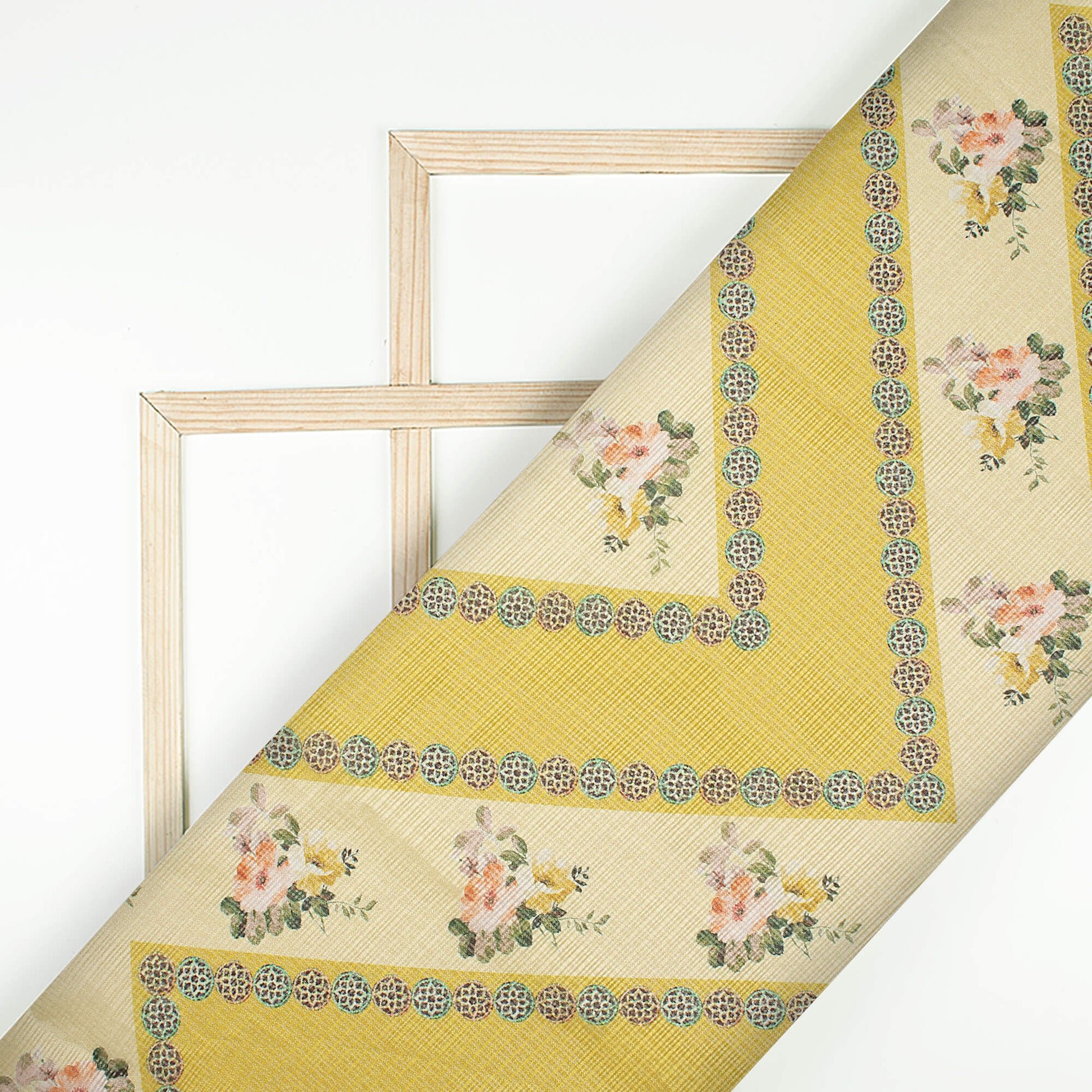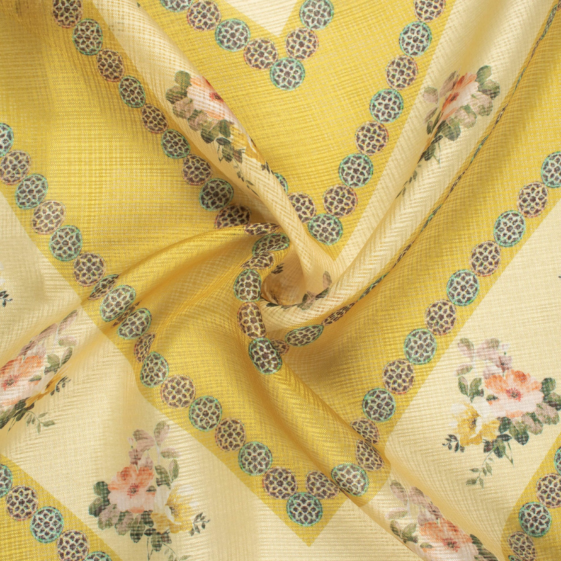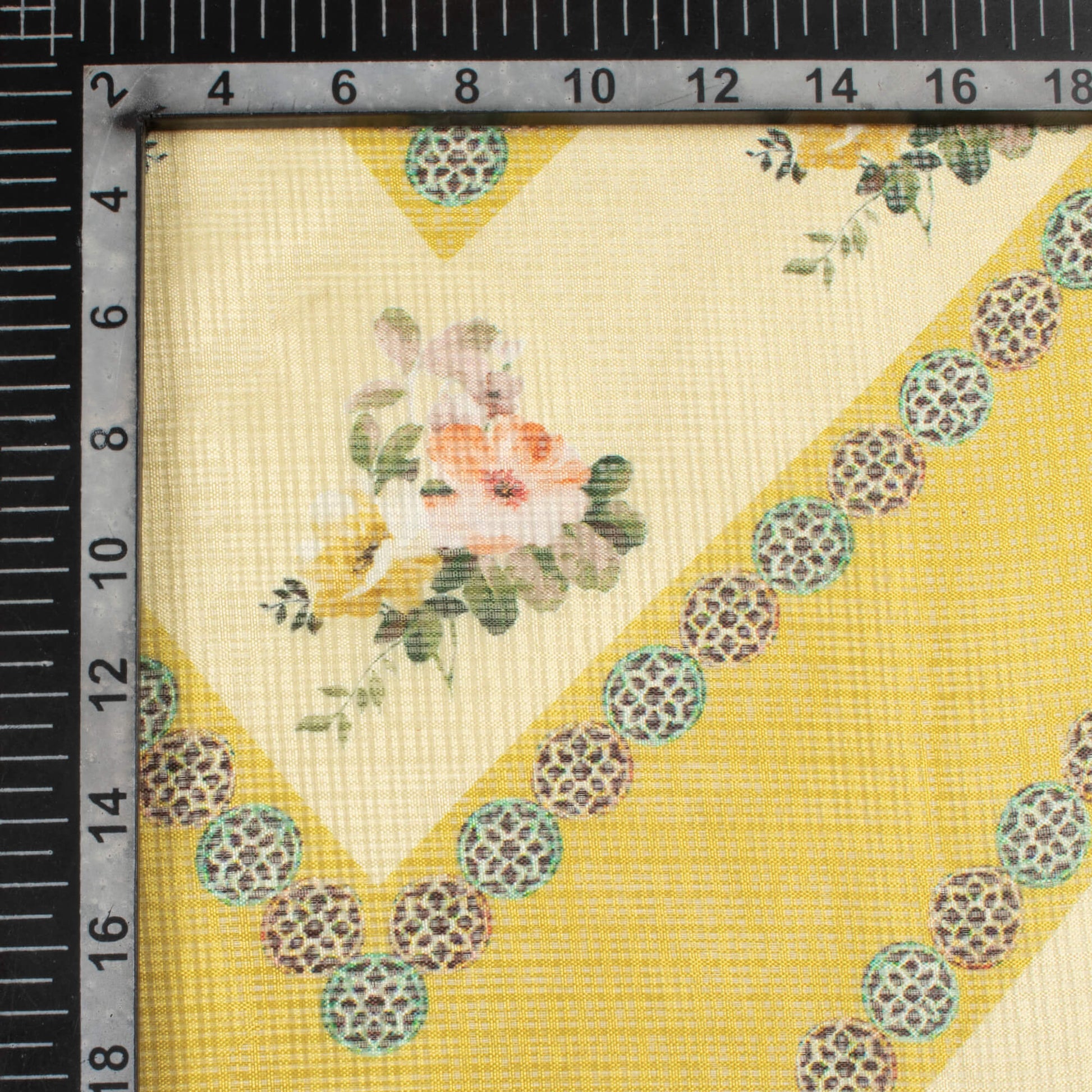 Olive Green And Peach Floral Pattern Digital Print Kota Doria Fabric,Chevron