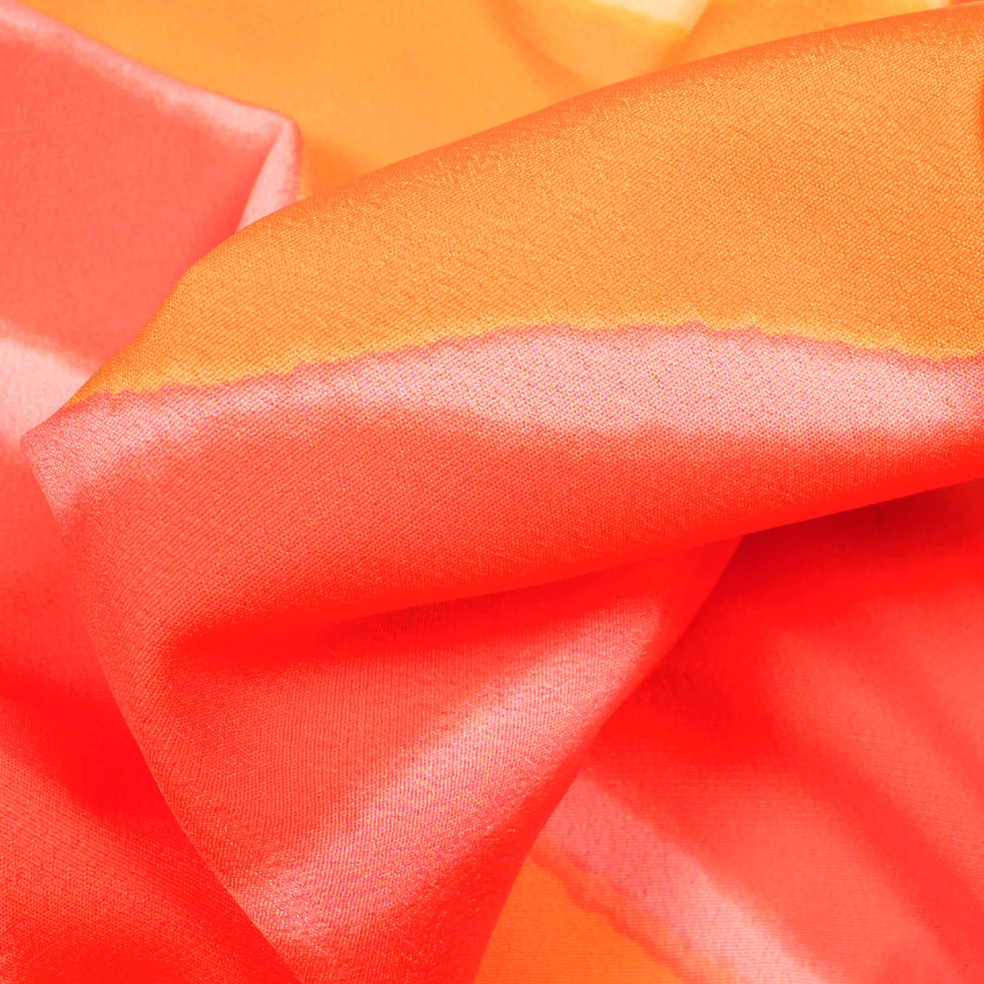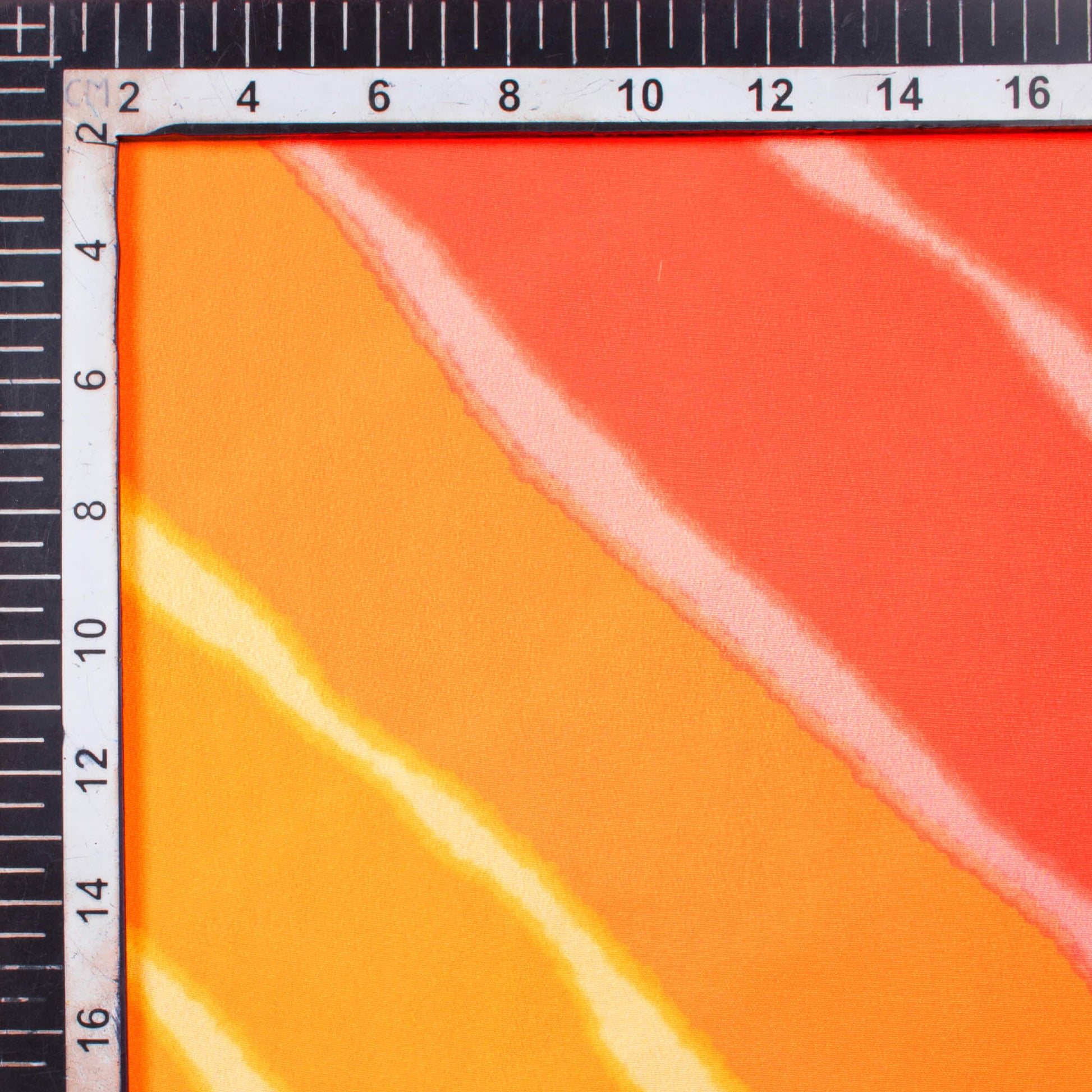 Orange And Honey Yellow Leheriya Pattern Digital Print Crepe Satin Fabric