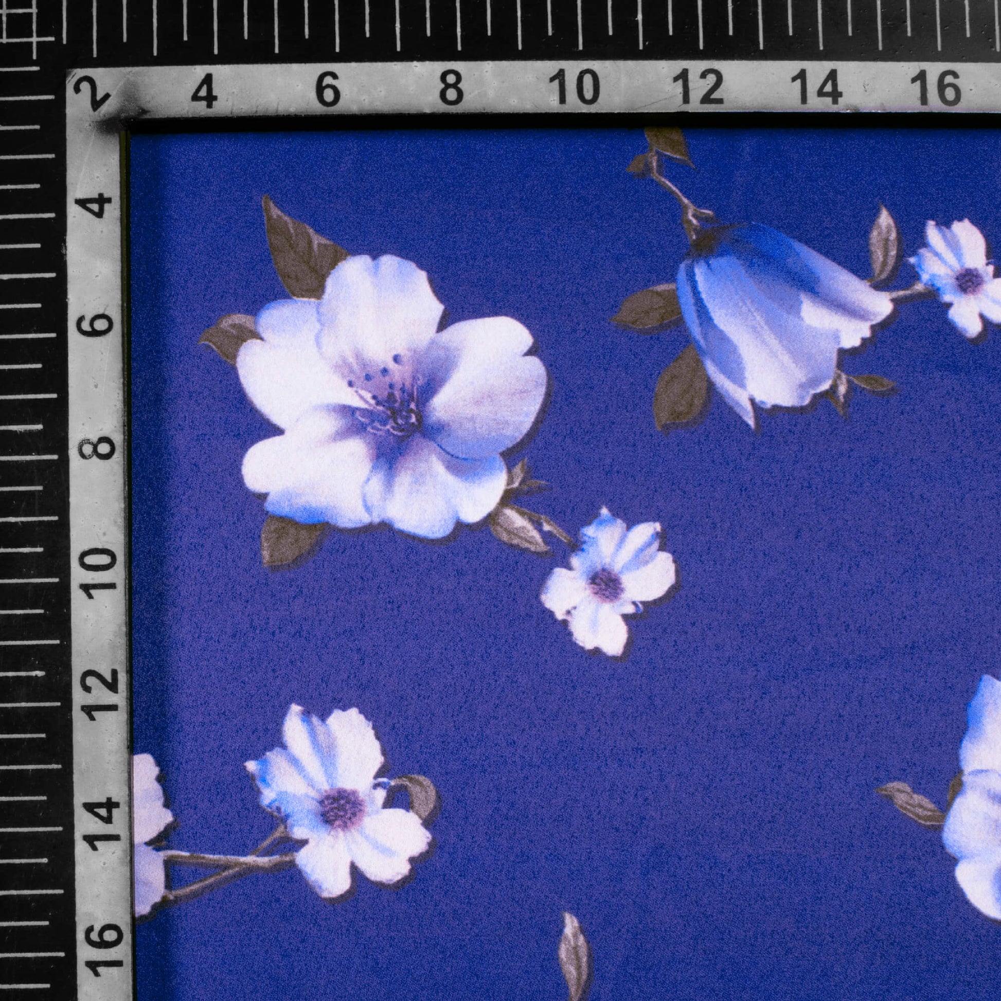 Royal Blue Floral Pattern Digital Print Charmeuse Satin Fabric (Width 58 Inches)