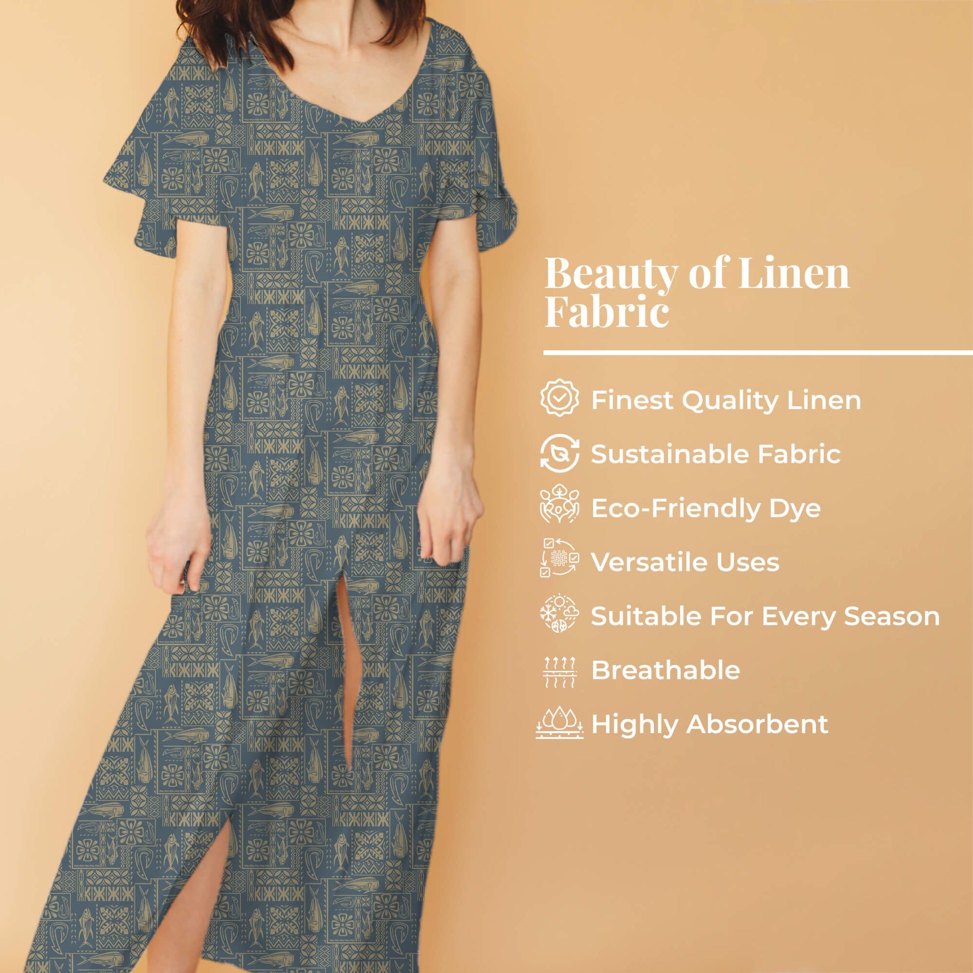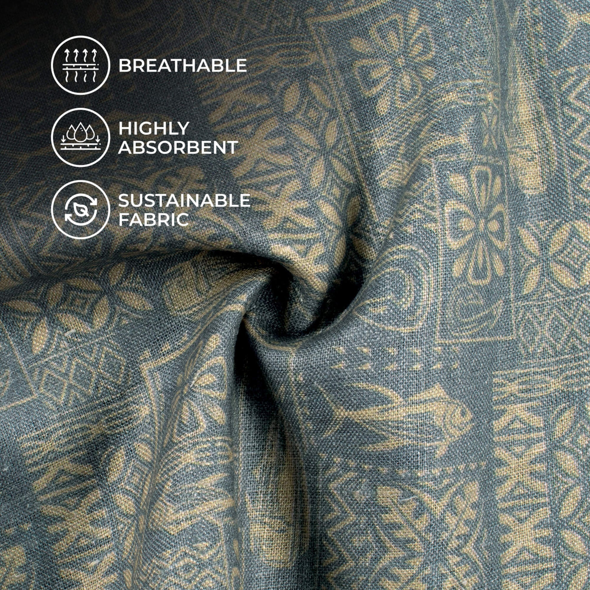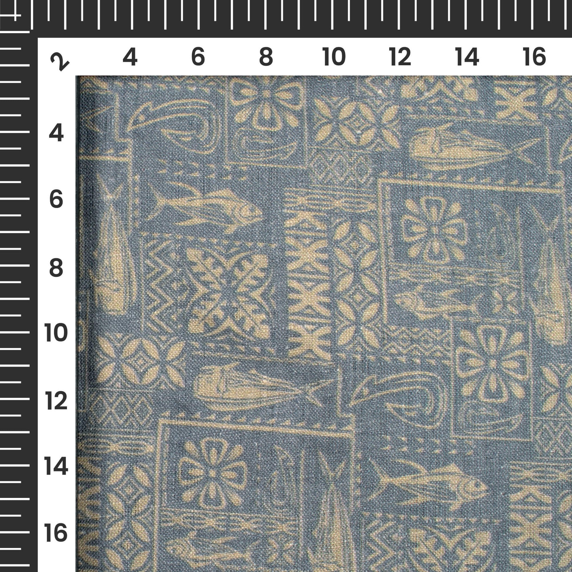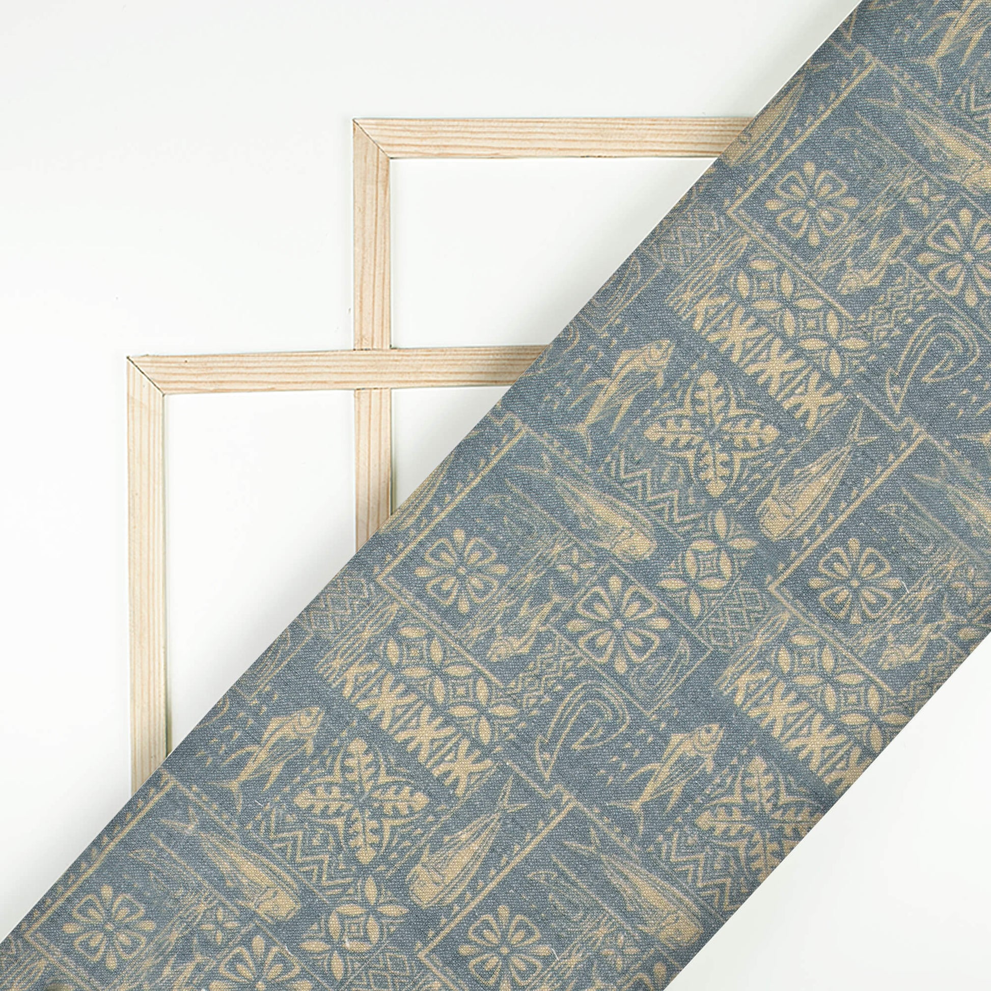 Slate Grey And Beige Quirky Pattern Digital Print Premium Swiss Linen Fabric