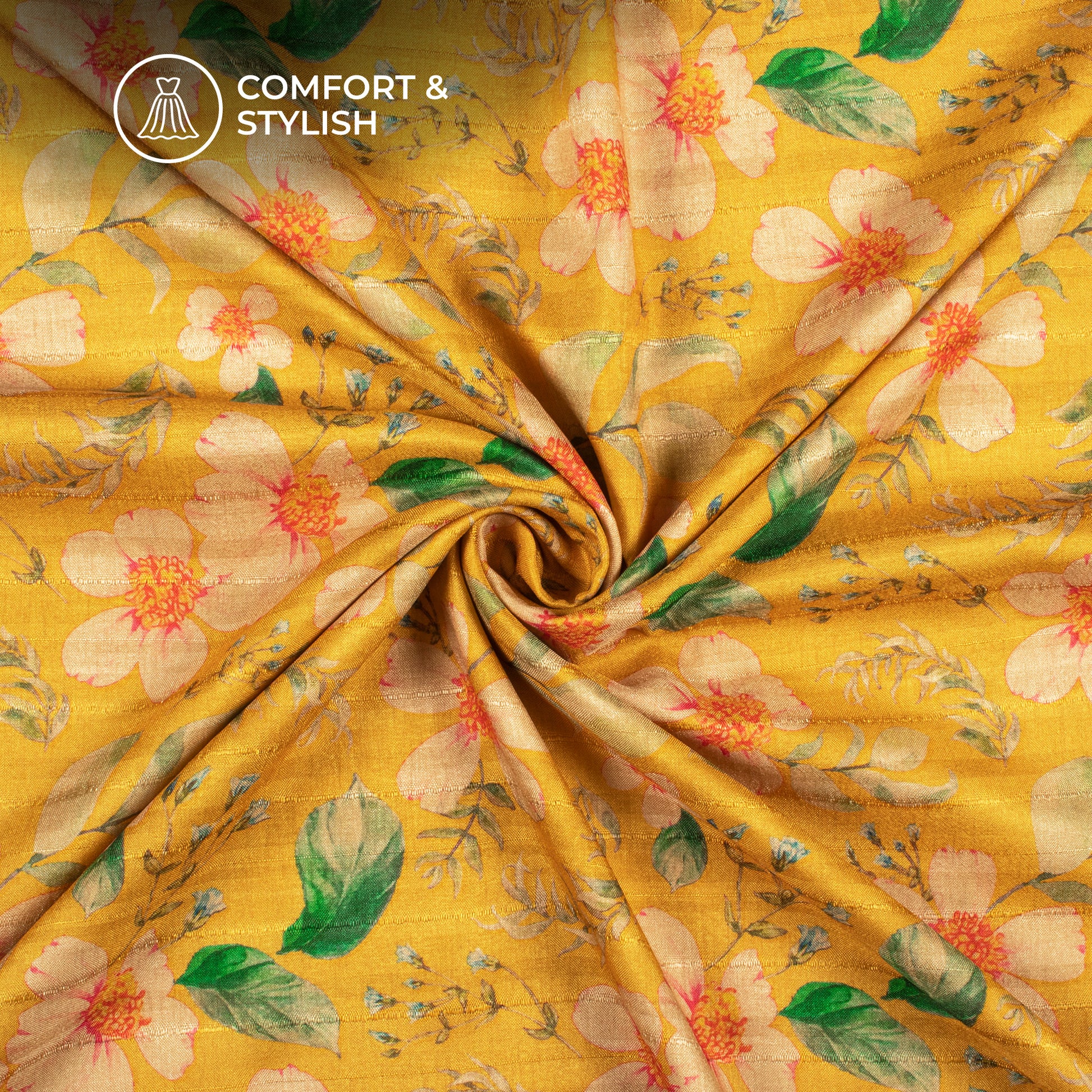Stunning Floral Digital Print Art Tusser Silk Fabric