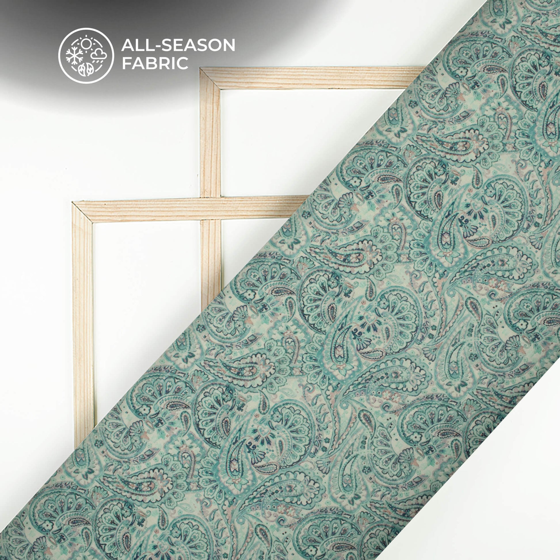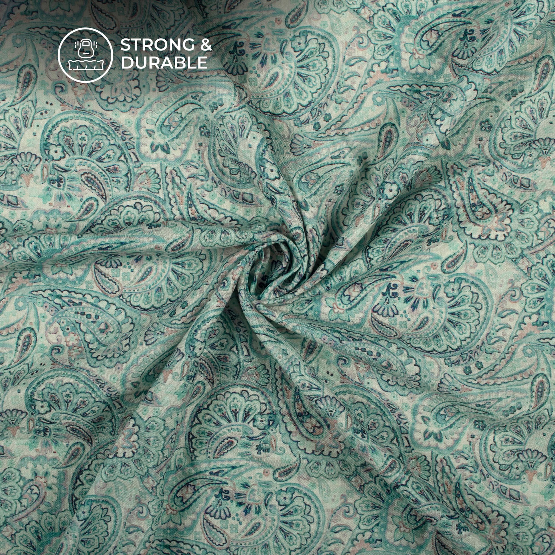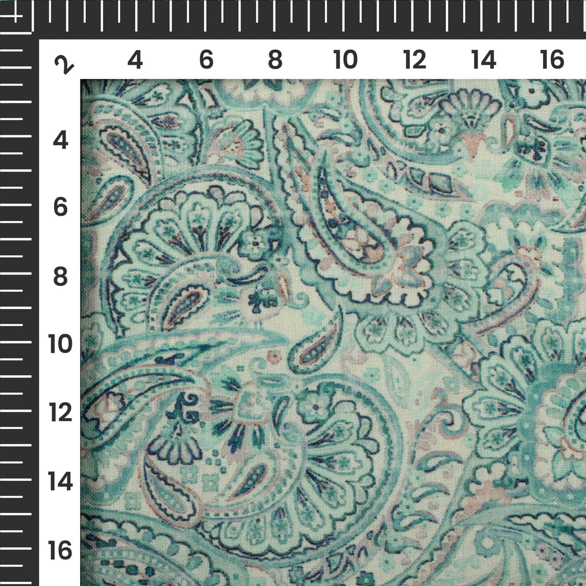Traditional Paisley Digital Print Linen Textured Fabric (Width 56 Inches)