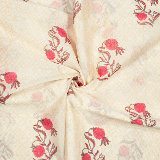 -50% offCream And Fuchsia Floral Pattern Handblock Pure Banarasi Chanderi Fabric Cream And Fuchsia Floral Pattern Handblock Pure Banarasi Chanderi Fabric
