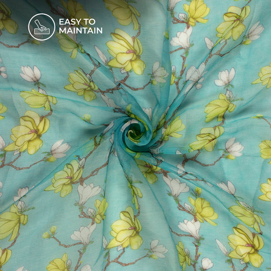 -7% offPretty Green Floral Digital Print Bemberg Chiffon Fabric Pretty Green Floral Digital Print Bemberg Chiffon Fabric