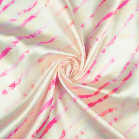 -10% offDaisy White And Hot Pink Leheriya Pattern Digital Print Japan Satin Fabric Daisy White And Hot Pink Leheriya Pattern Digital Print Japan Satin Fabric