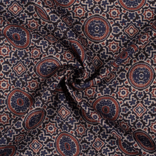 Dark Blue And Sangria Red Ajrakh Pattern Digital Print Linen Textured Fabric (Width 56 Inches) Dark Blue And Sangria Red Ajrakh Pattern Digital Print Linen Textured Fabric (Width 56 Inches)