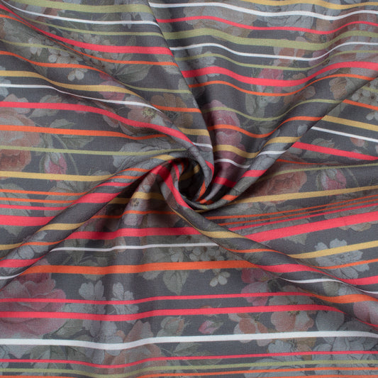Magenta Pink And Grey Stripes Pattern Digital Print Muslin Fabric Magenta Pink And Grey Stripes Pattern Digital Print Muslin Fabric