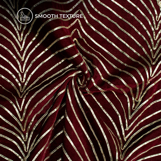 -20% offLuxurious Golden Zari Chevron Embroidery On Maroon Velvet Fabric Luxurious Golden Zari Chevron Embroidery On Maroon Velvet Fabric
