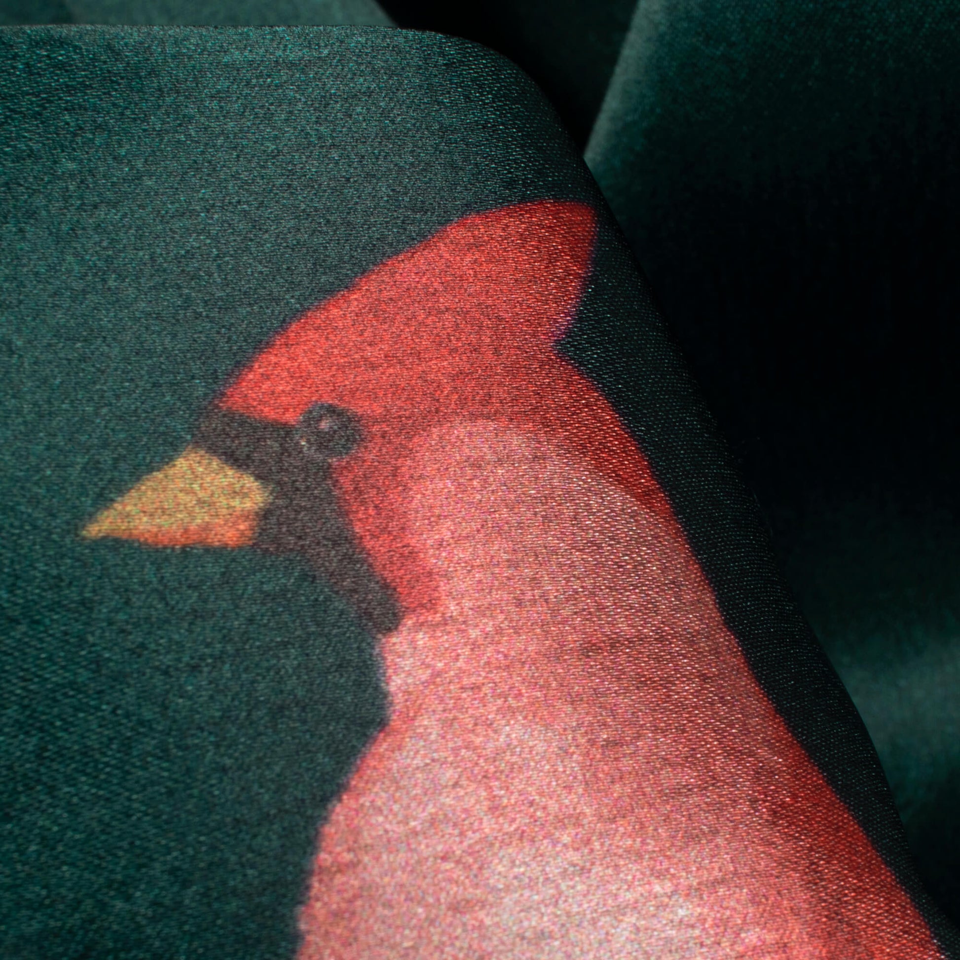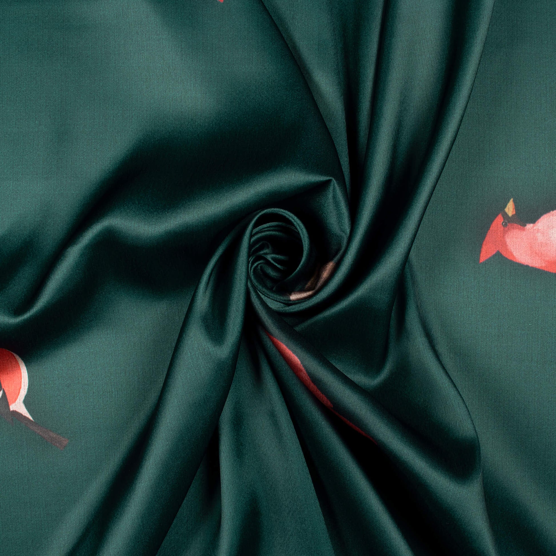 Green And Red Bird Pattern Digital Print Japan Satin Fabric