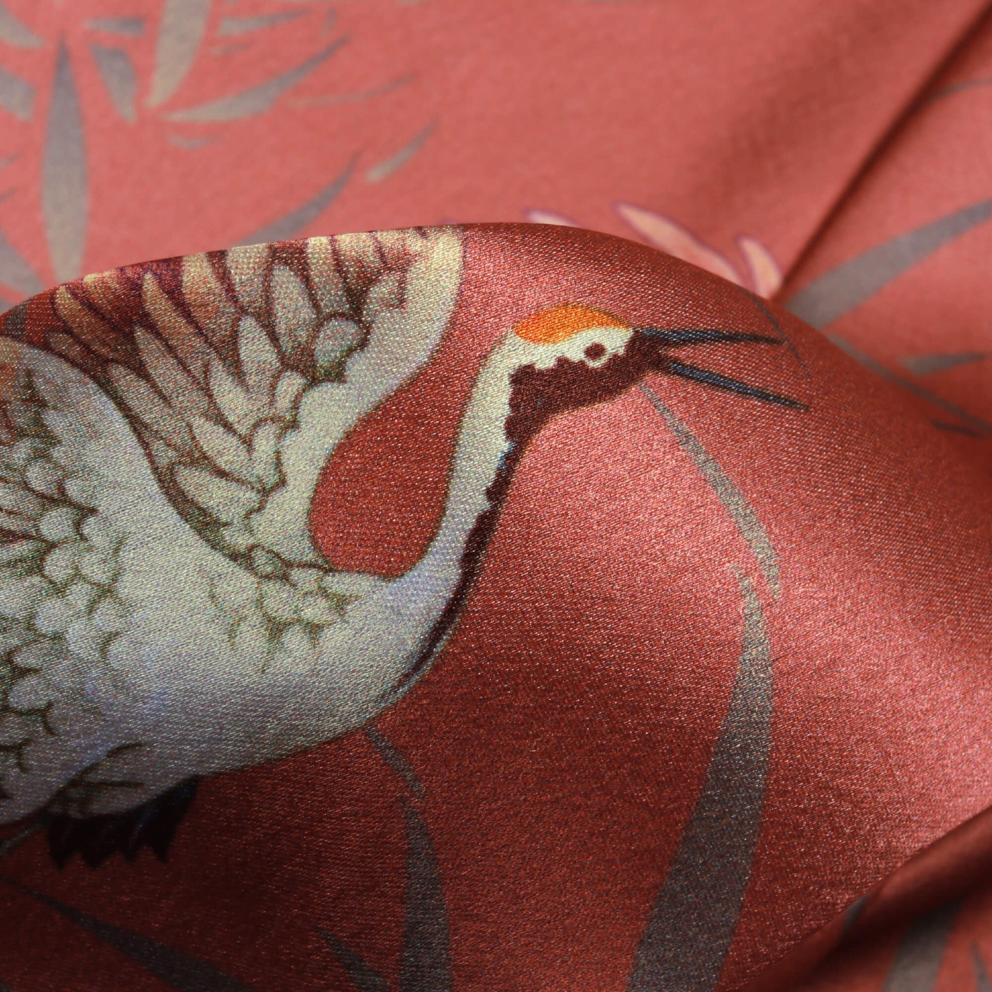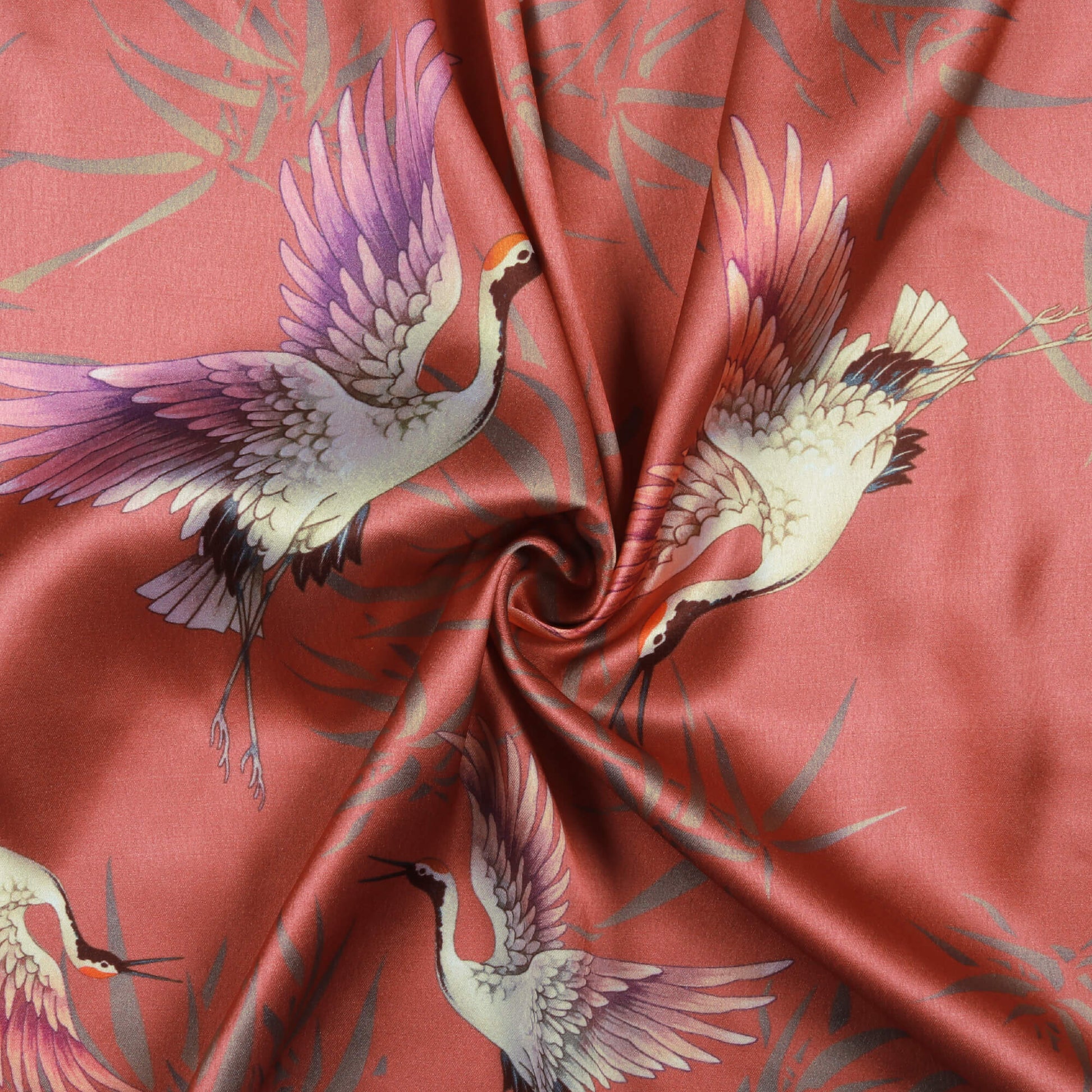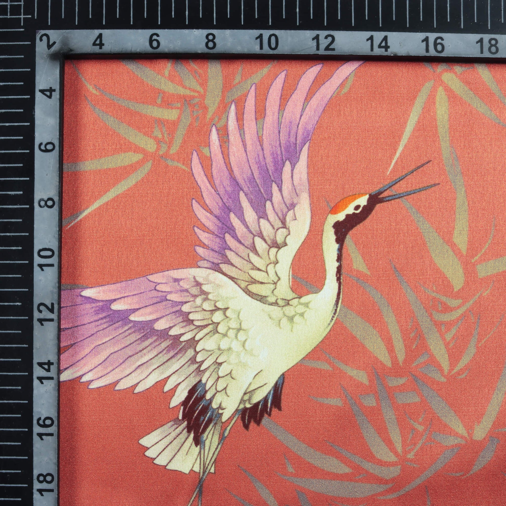 Blush Red And Ivory Cream Bird Pattern Digital Print Japan Satin Fabric
