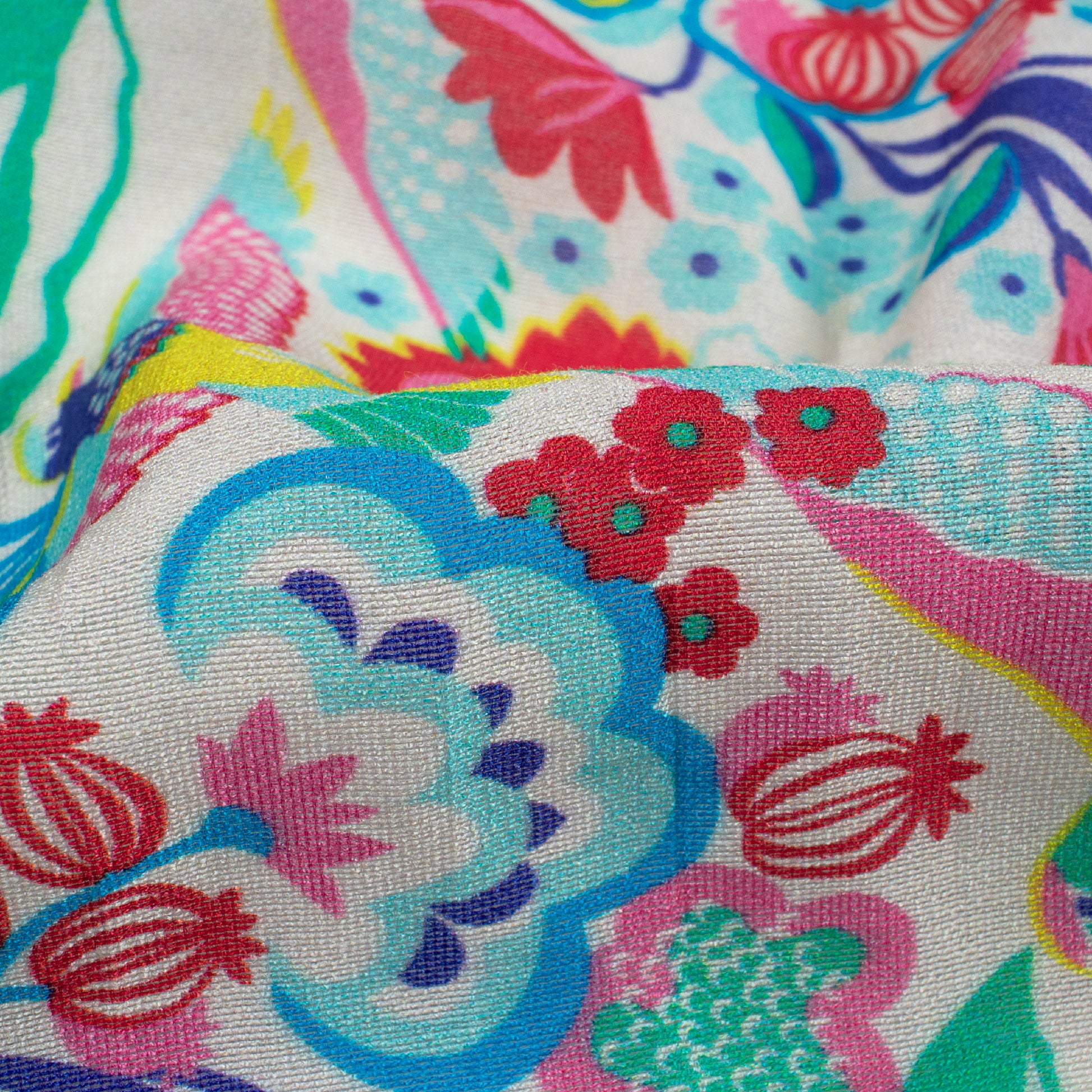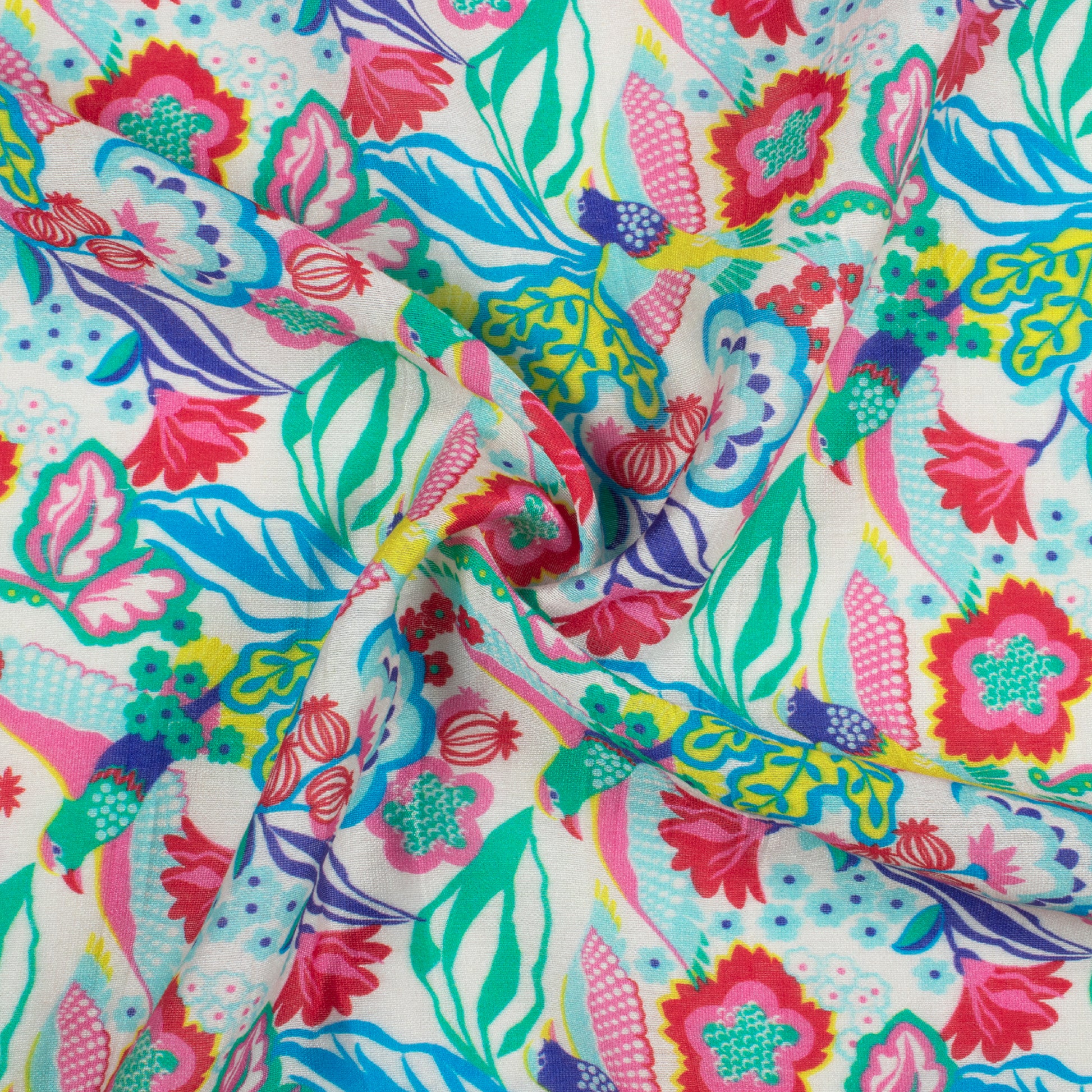 Jungle Green And Taffy Pink Bird Pattern Digital Print Viscose Chanderi Fabric
