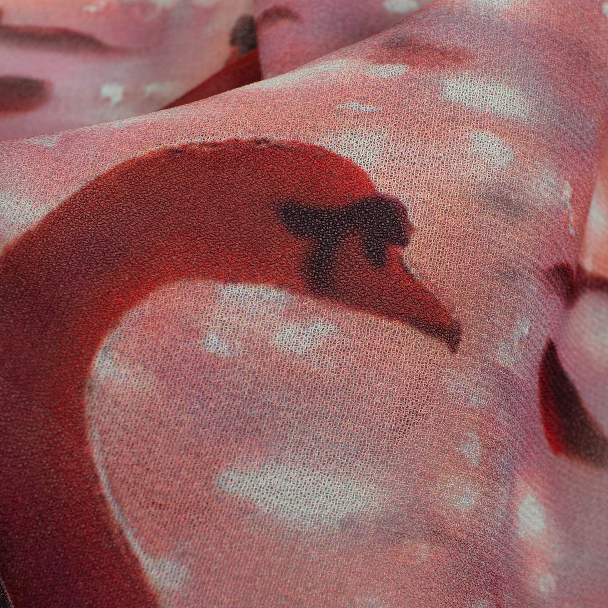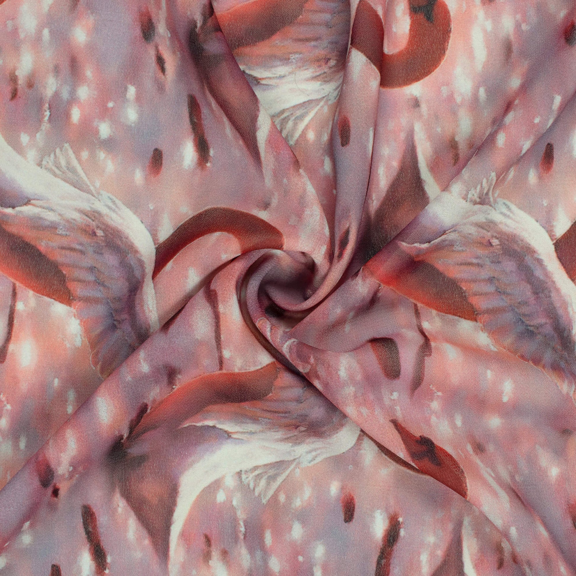 Reddish Brown Bird Pattern Digital Print Georgette Fabric