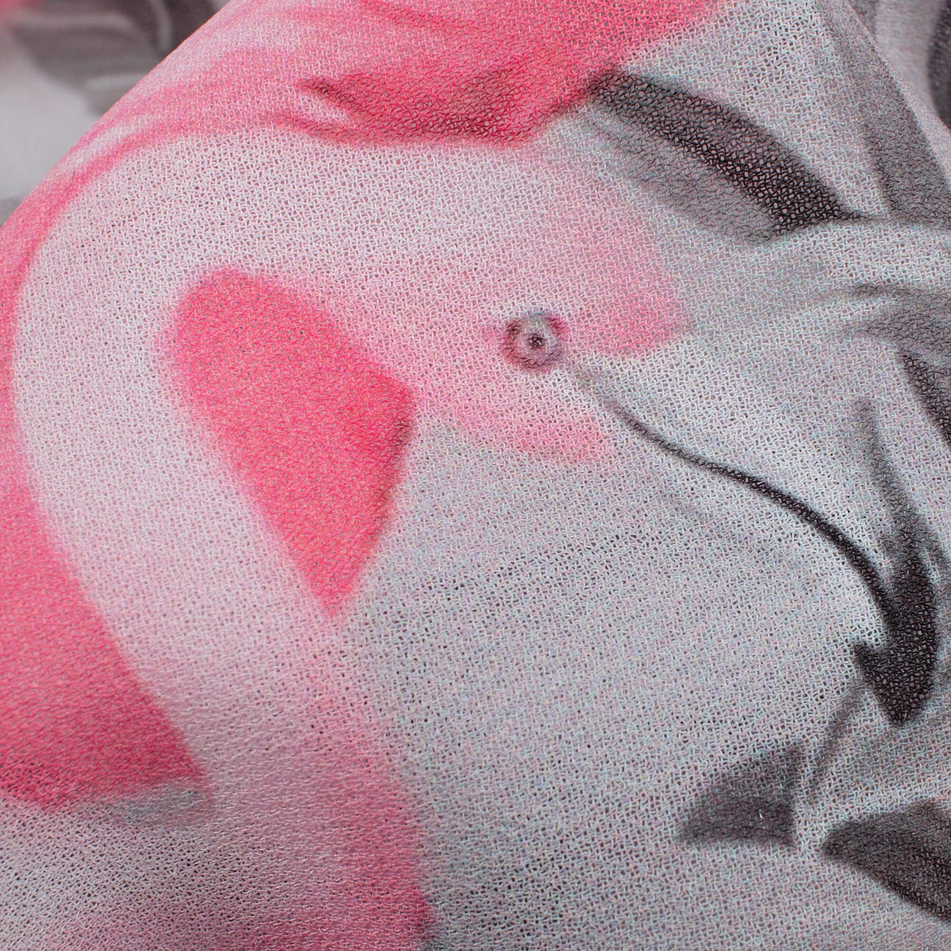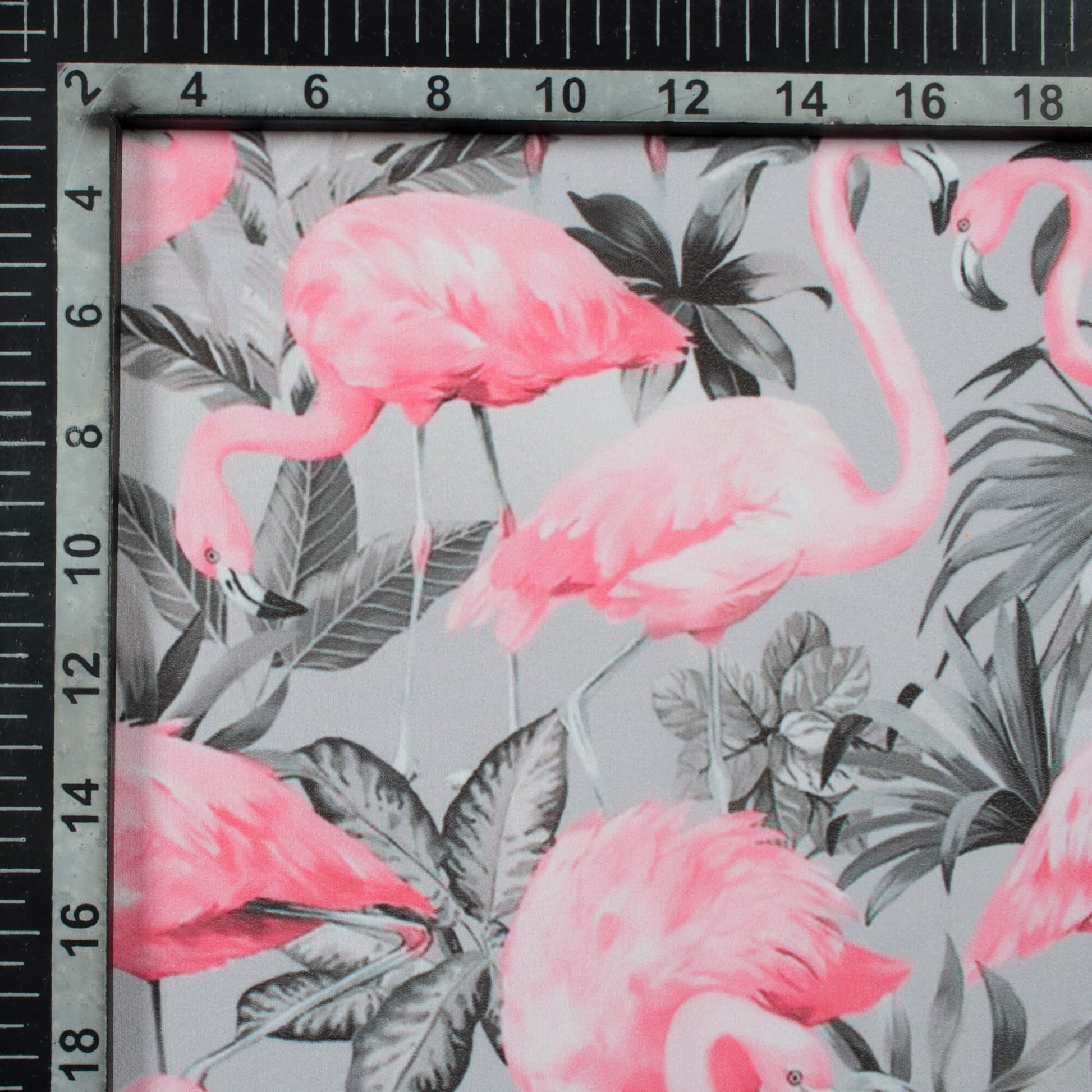 Steel Grey And Flamingo Pink Bird Pattern Digital Print Georgette Fabric