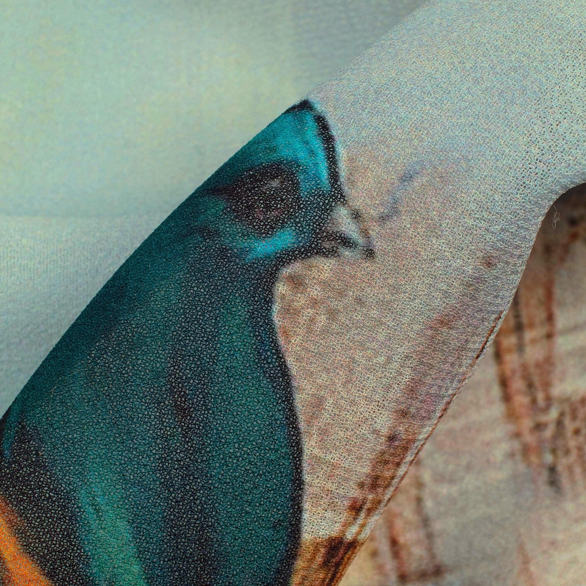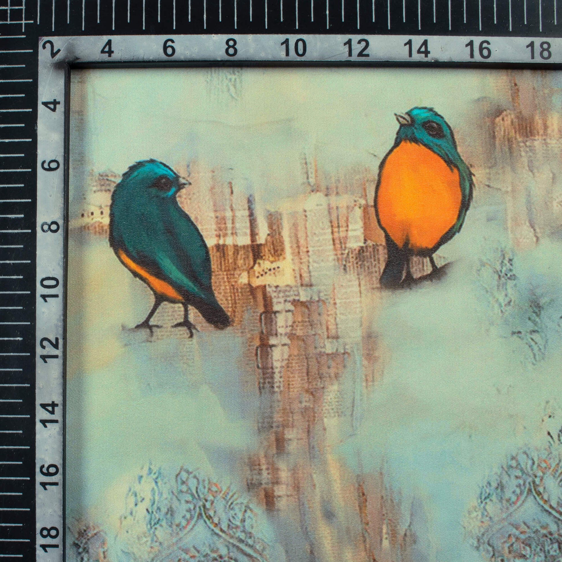 Stone Blue And Orange Bird Pattern Digital Print Georgette Fabric