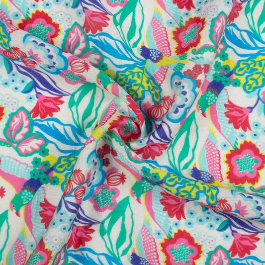 -10% offWhite And Grape Purple Bird Pattern Digital Print Georgette Fabric White And Grape Purple Bird Pattern Digital Print Georgette Fabric