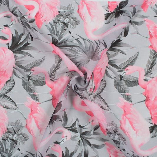 -10% offSteel Grey And Flamingo Pink Bird Pattern Digital Print Georgette Fabric Steel Grey And Flamingo Pink Bird Pattern Digital Print Georgette Fabric