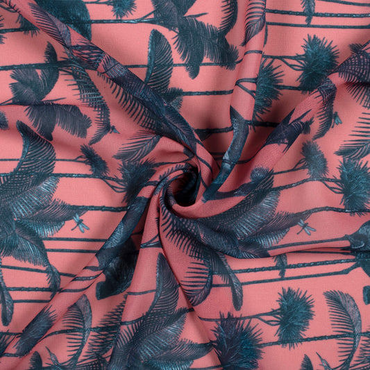 Jungle Green And Taffy Pink Bird Pattern Digital Print Viscose Chanderi Fabric Jungle Green And Taffy Pink Bird Pattern Digital Print Viscose Chanderi Fabric