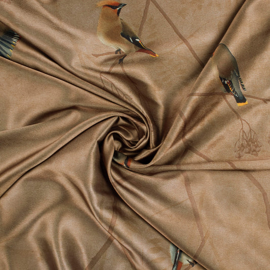 -10% offBrown And Orange Bird Pattern Digital Print Japan Satin Fabric Brown And Orange Bird Pattern Digital Print Japan Satin Fabric
