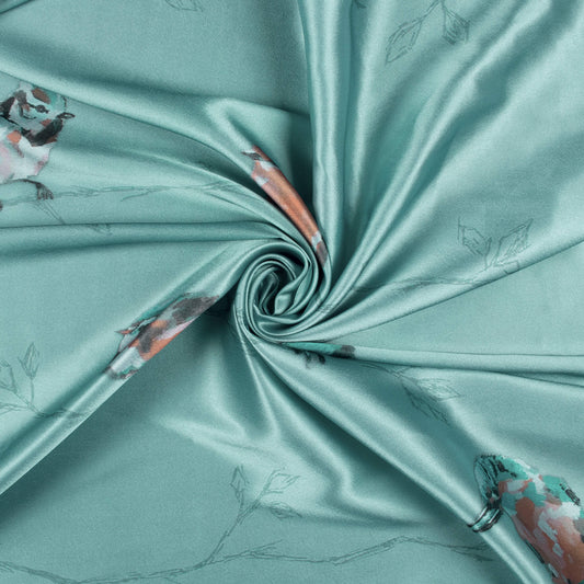 -10% offTea Green And Orange Bird Pattern Digital Print Japan Satin Fabric Tea Green And Orange Bird Pattern Digital Print Japan Satin Fabric