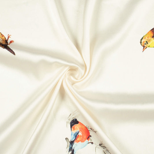 -10% offIvory White Bird Pattern Digital Print Japan Satin Fabric Ivory White Bird Pattern Digital Print Japan Satin Fabric