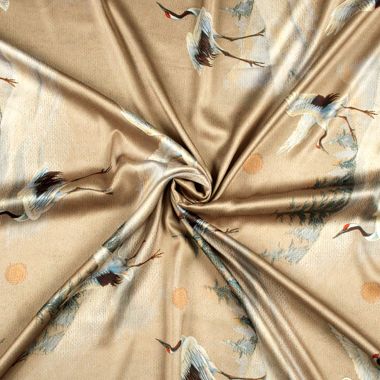 -10% offSand Beige And Baby Blue Bird Pattern Digital Print Japan Satin Fabric Sand Beige And Baby Blue Bird Pattern Digital Print Japan Satin Fabric