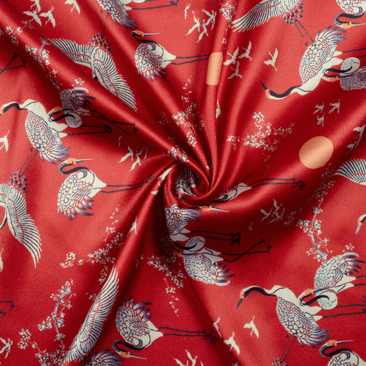 -10% offBerry Red And Off White Bird Pattern Digital Print Japan Satin Fabric Berry Red And Off White Bird Pattern Digital Print Japan Satin Fabric