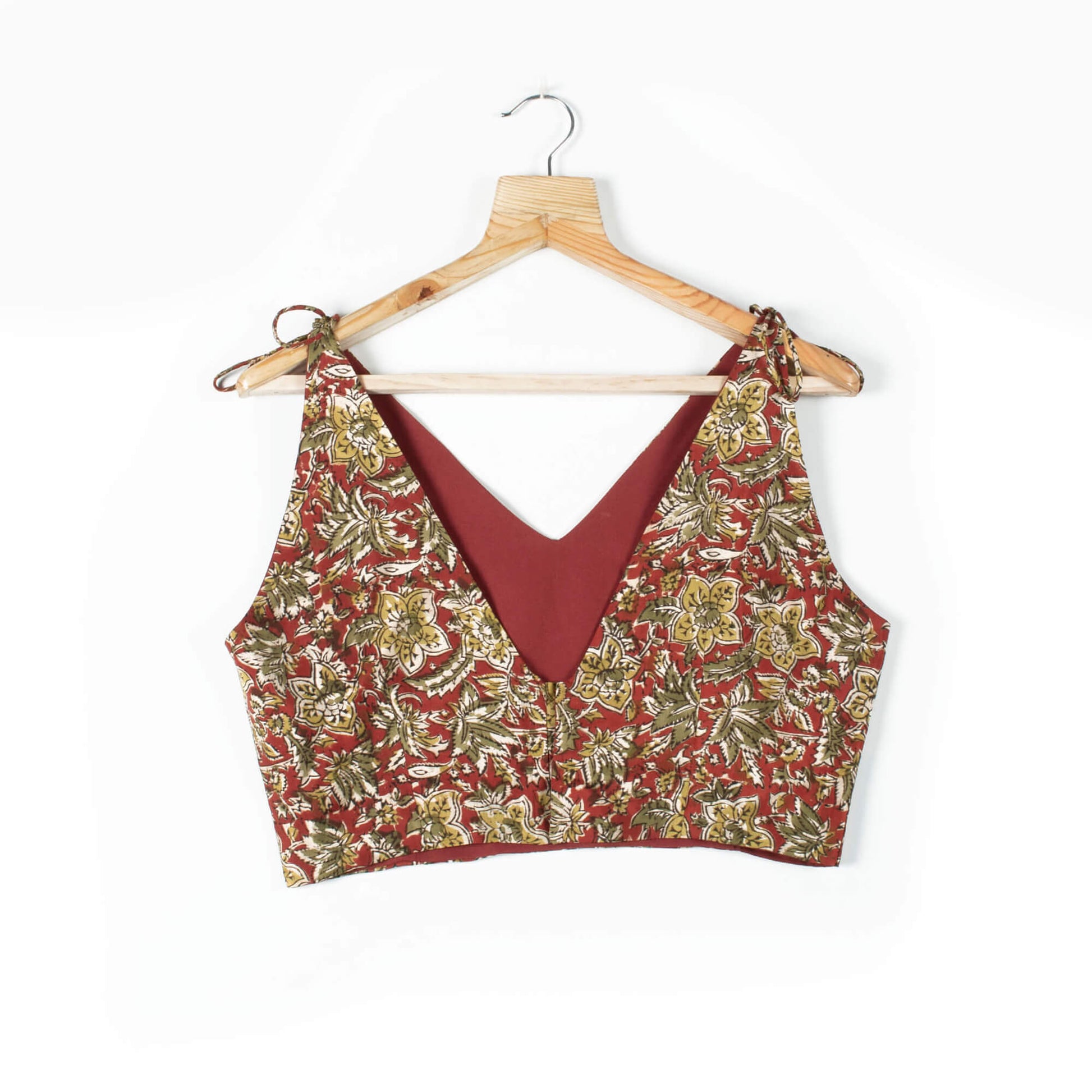 Kalamkrii Printed Silk Spaghetti Tie Up Blouse