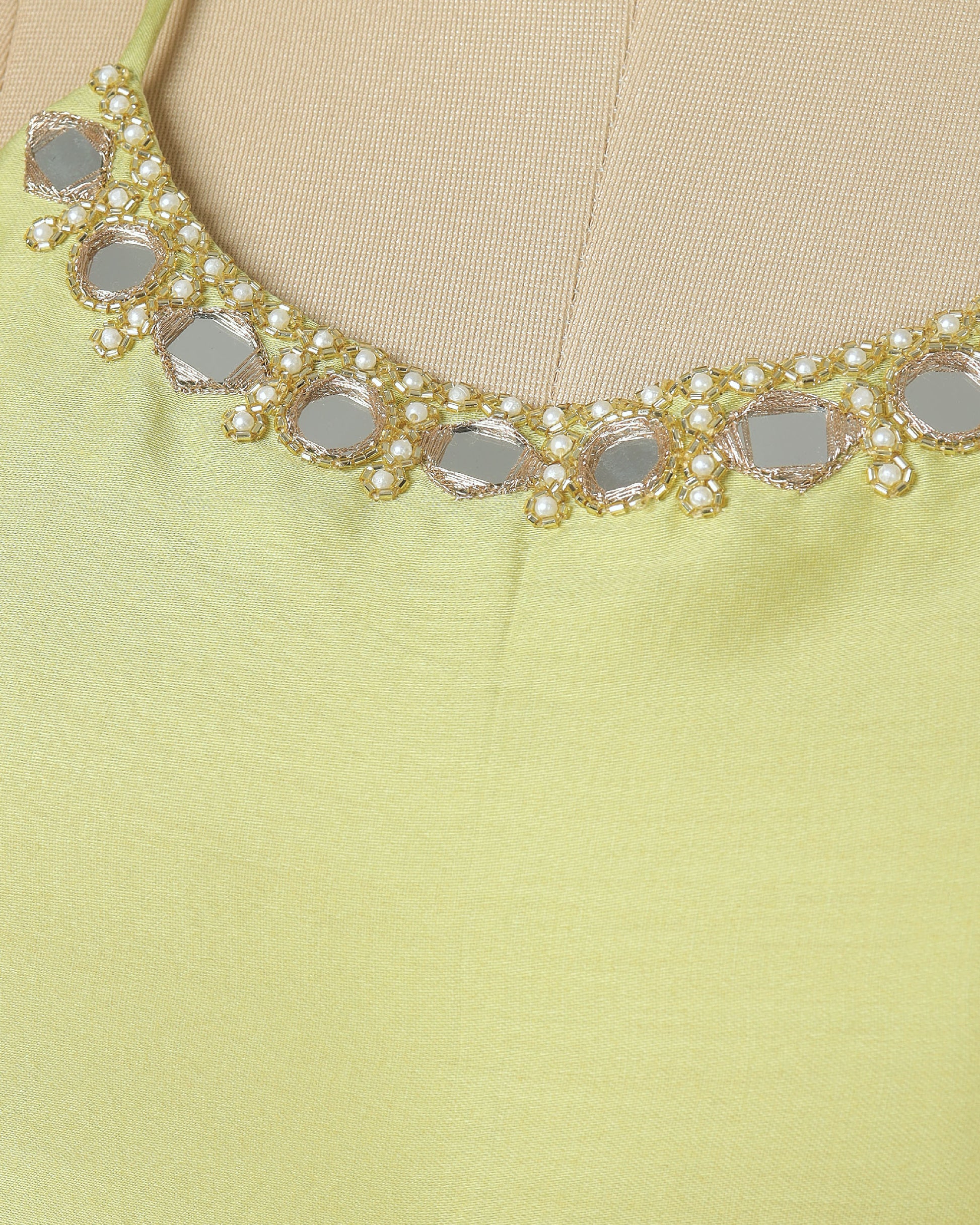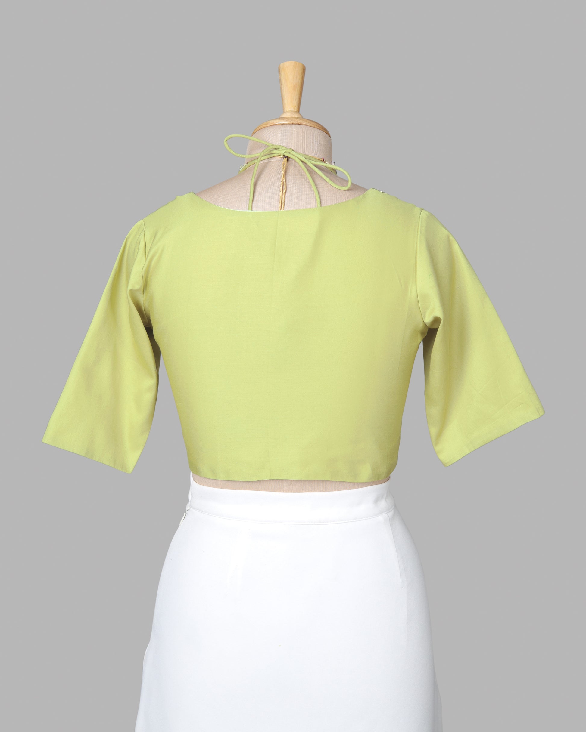Premium Mirror Hand Work Moss Green Cotton Blouse